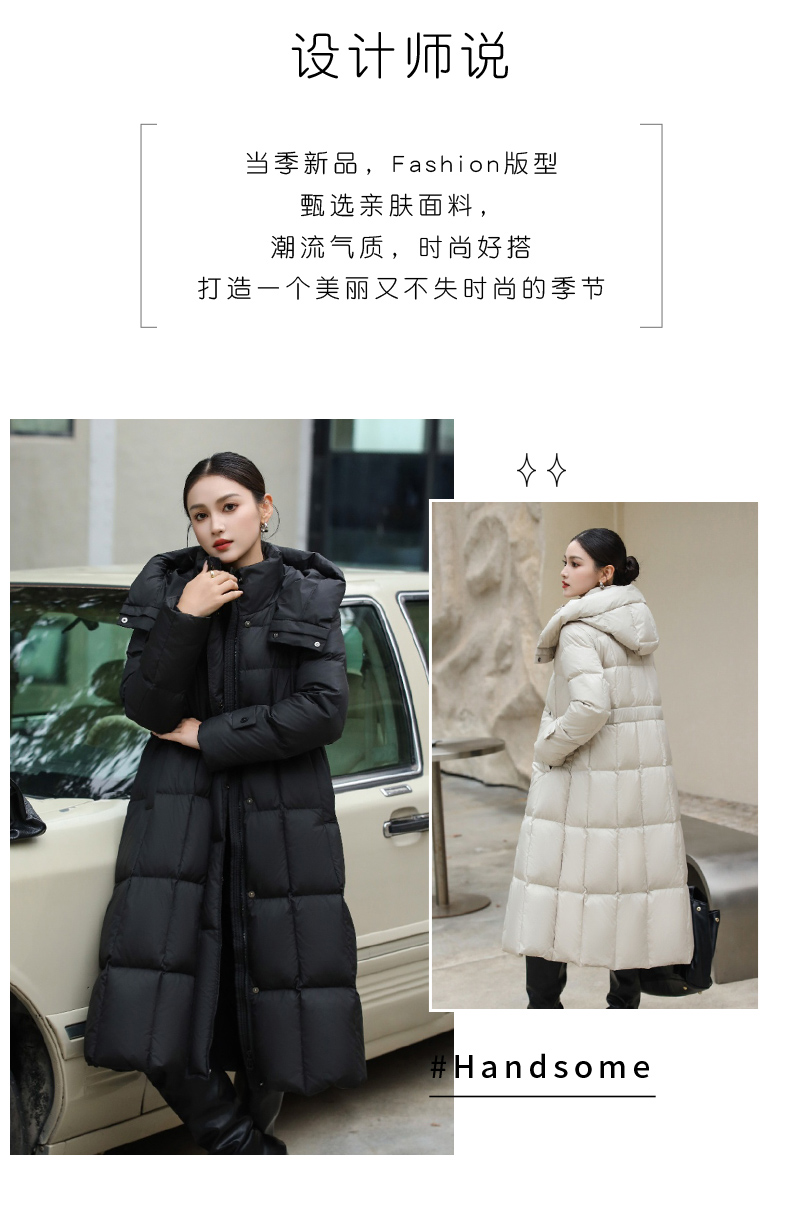 长款加厚过膝羽绒服,白鸭绒保暖连帽外套HR-QXG8515