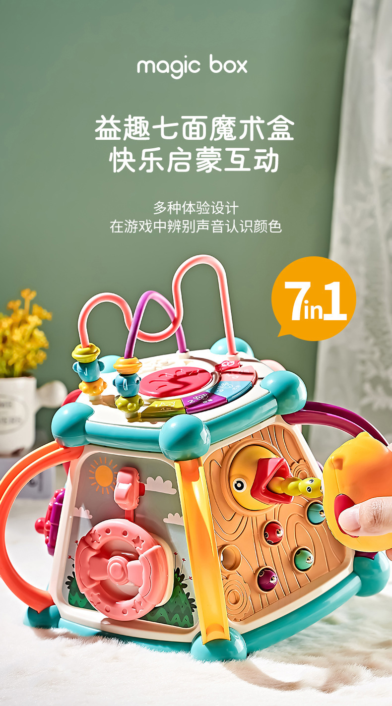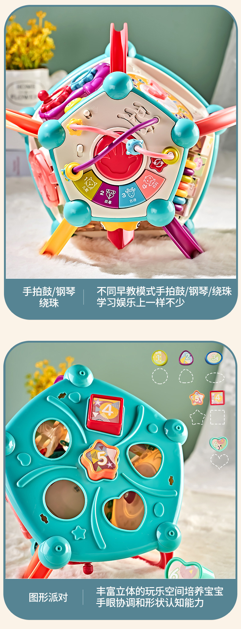 【多彩配色!儿童拍拍鼓】0-1岁婴儿六面体儿童手拍鼓拍拍,婴儿玩具手拍鼓,多面体益智玩具音乐,6个月宝宝早教玩具-QQ