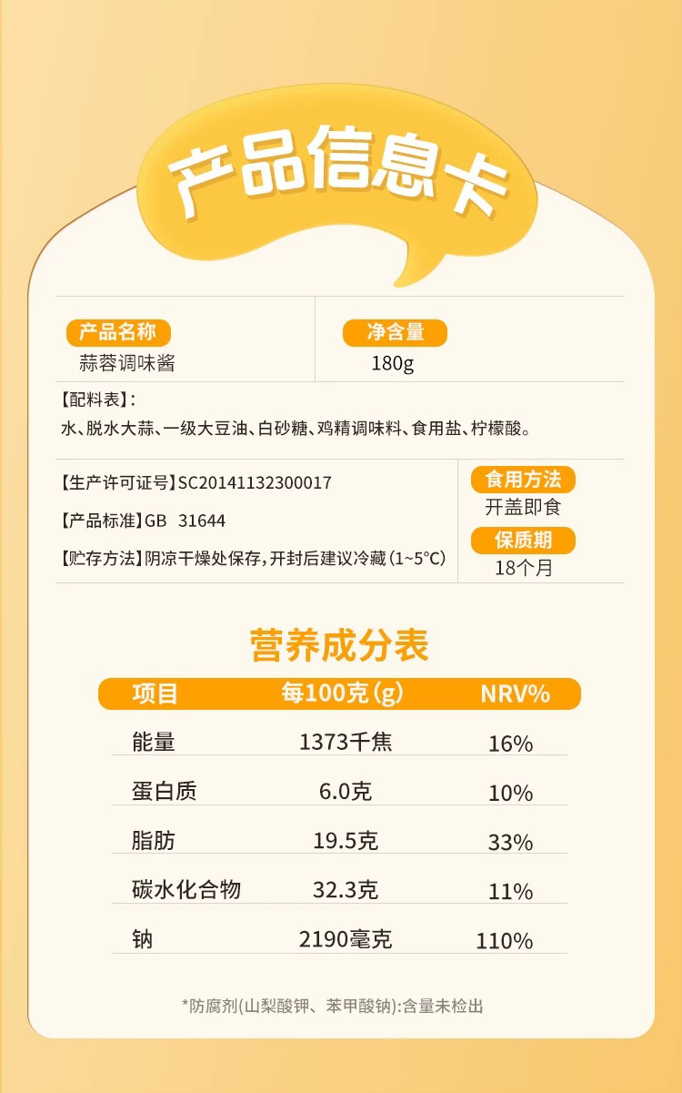 仲景蒜蓉(180克/瓶)