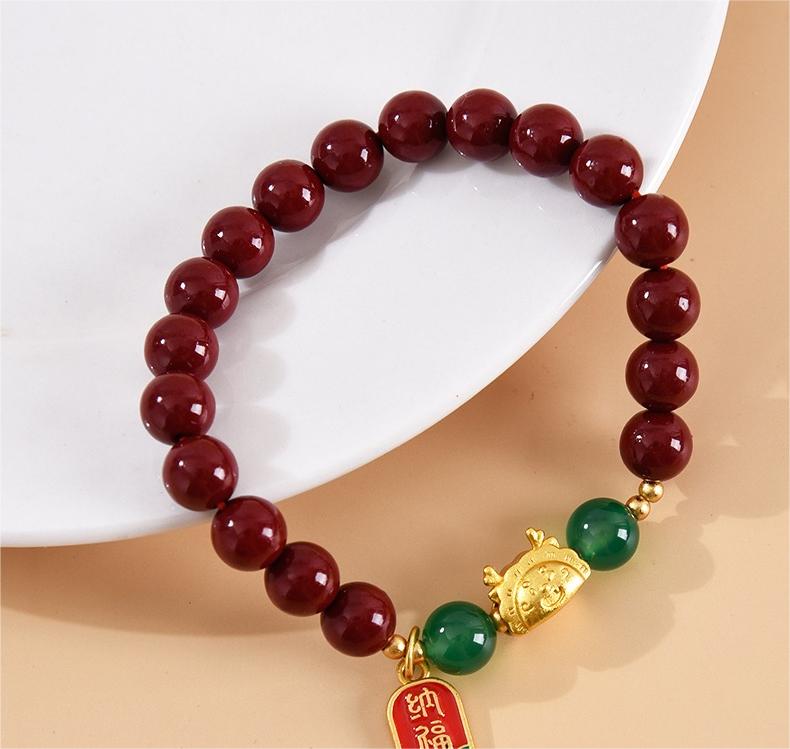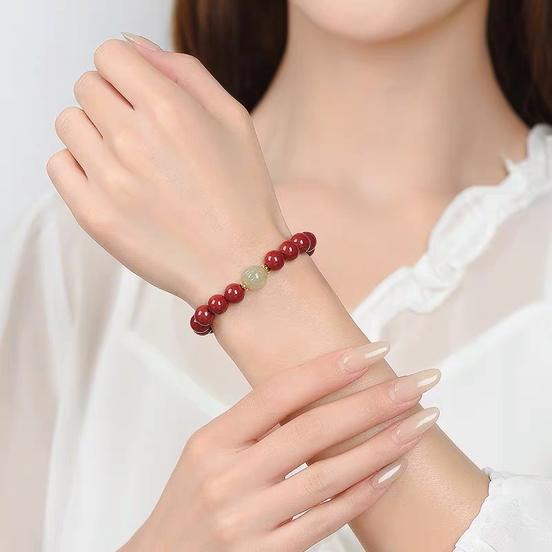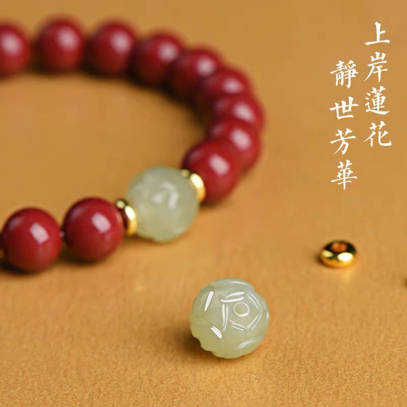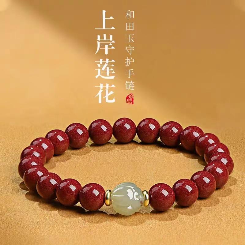 一笼蒸饺纳福朱砂手链和上岸莲花和田玉手串 可供选择