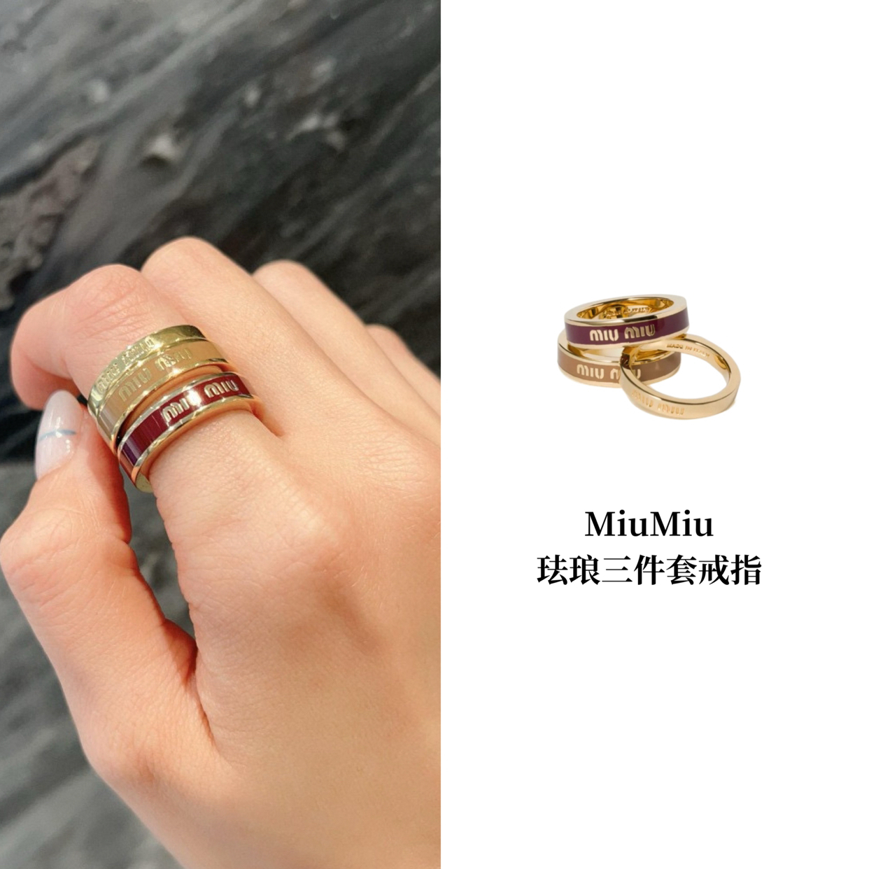 MIU-J 珐琅戒指三件套(焦糖|紫红|金)