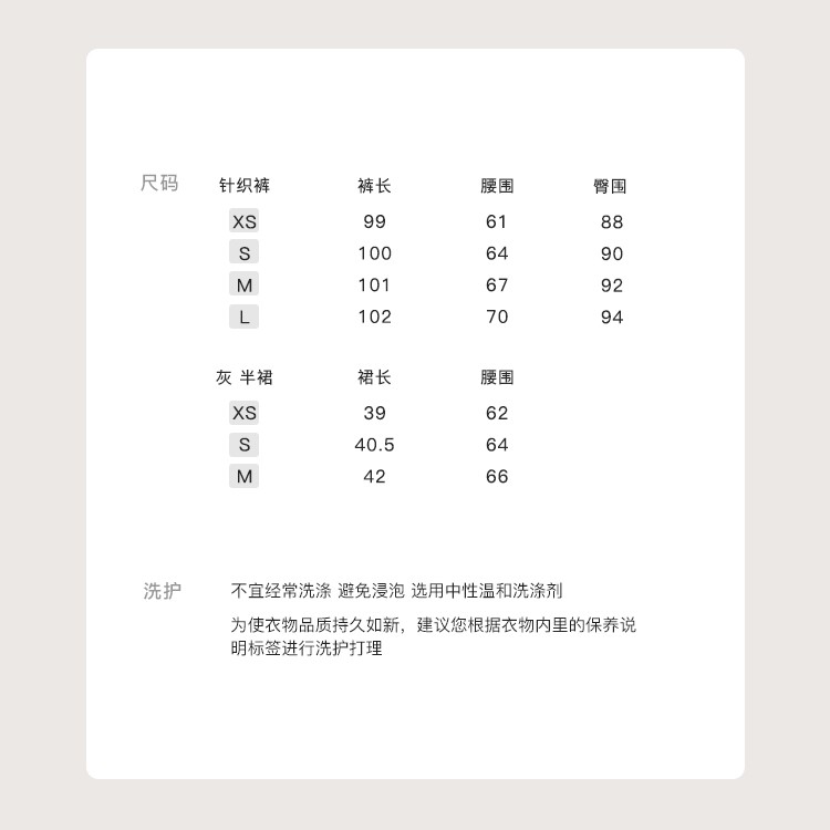灰半裙:52.2聚酯纤维 25锦纶 15.4腈纶 3.9绵羊毛 3.5桑蚕丝