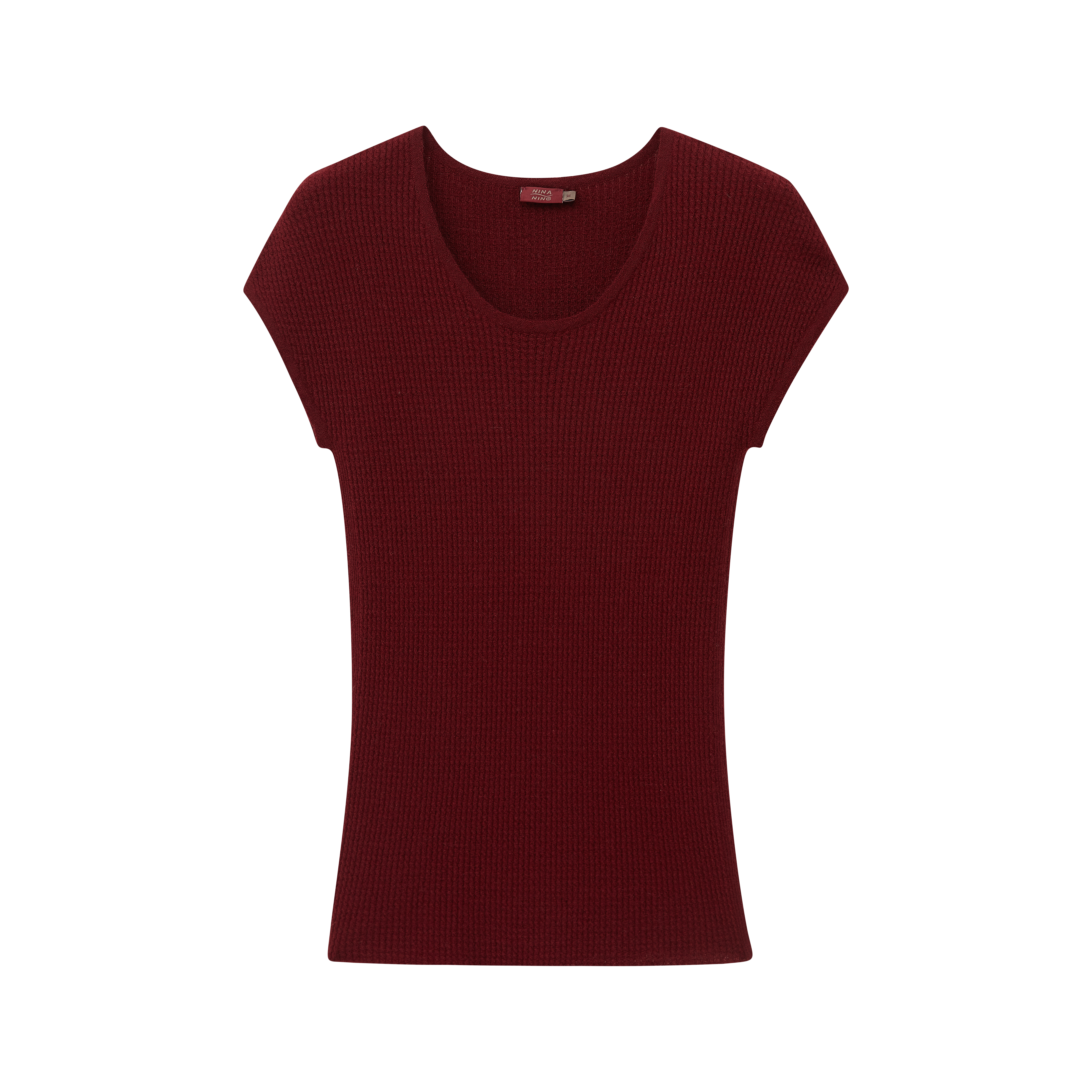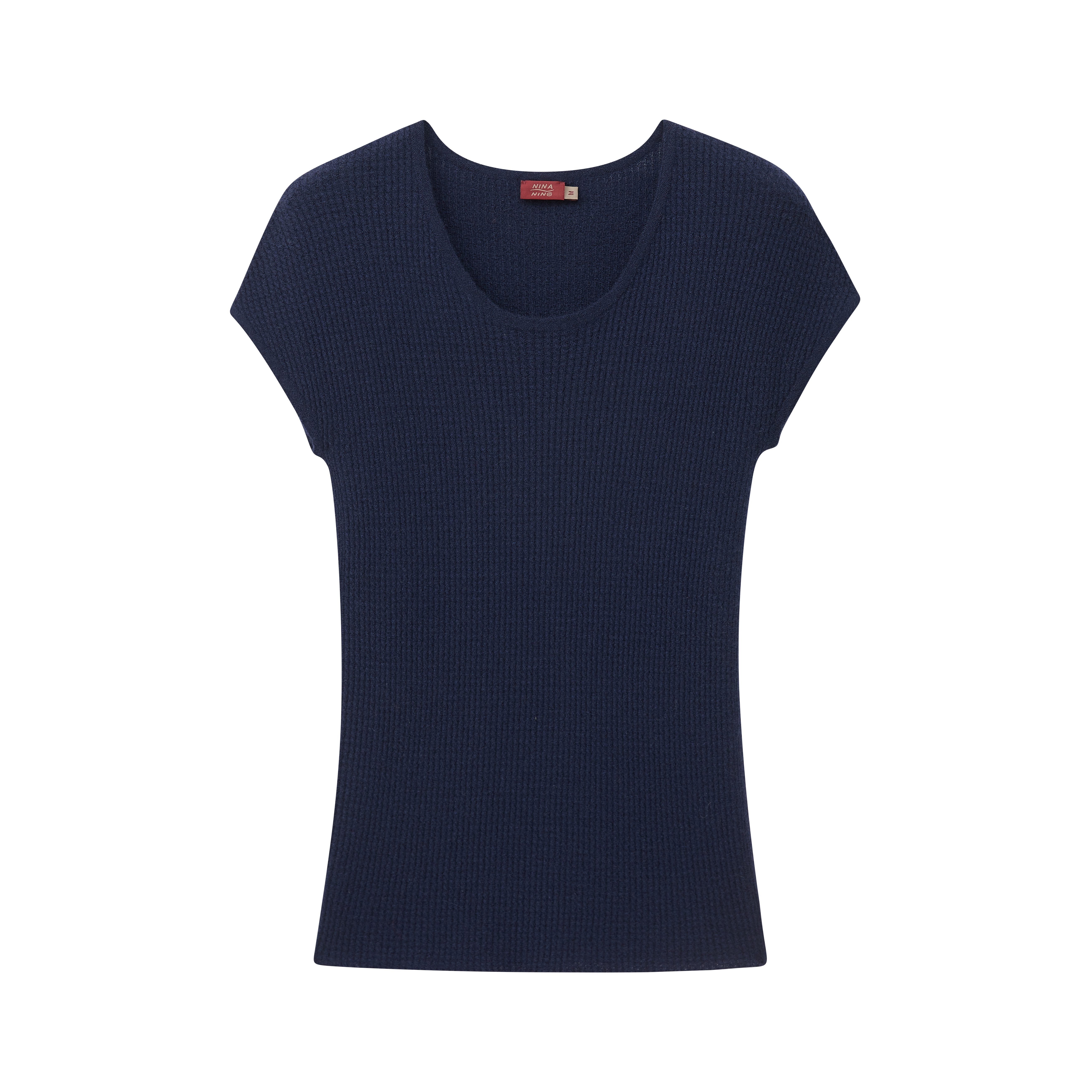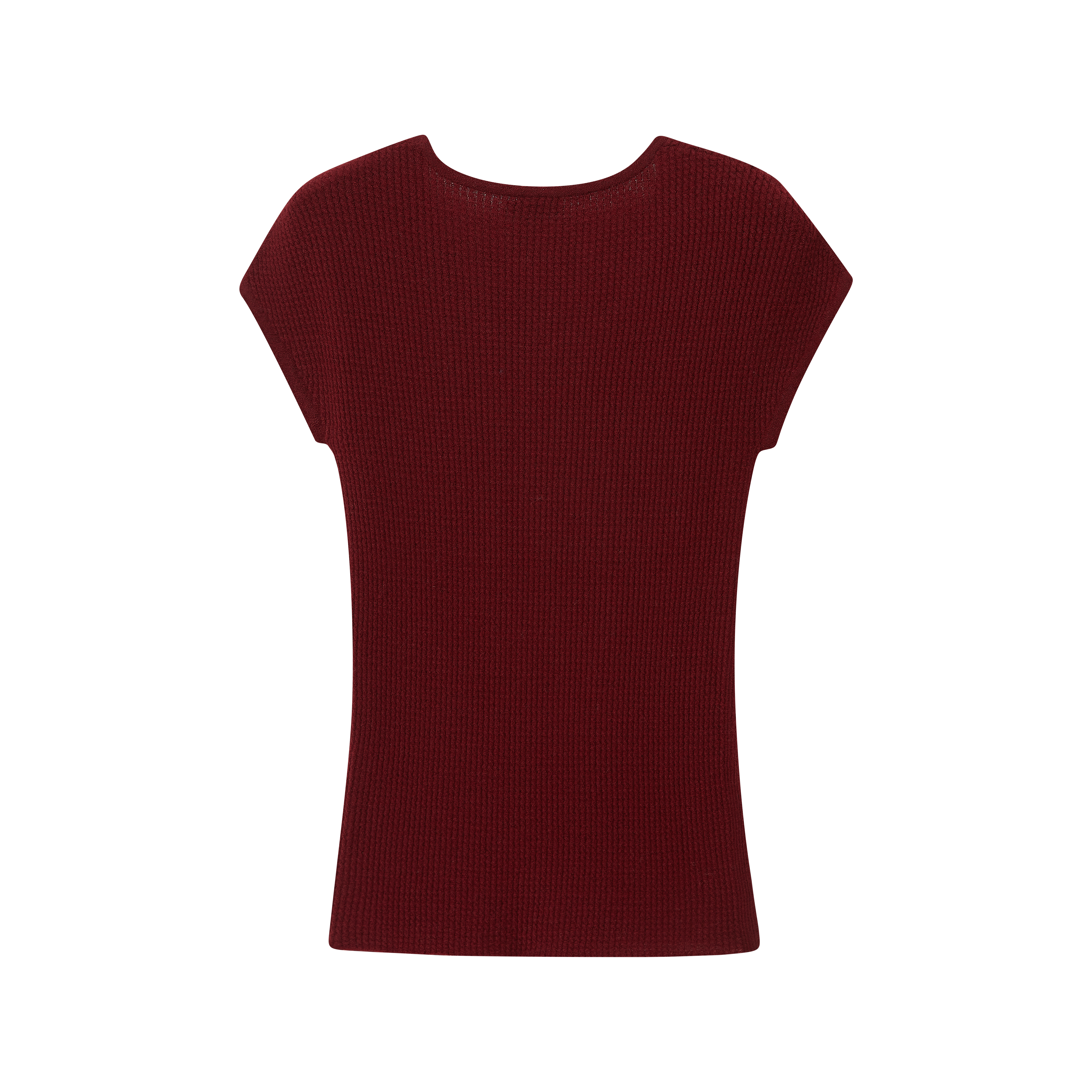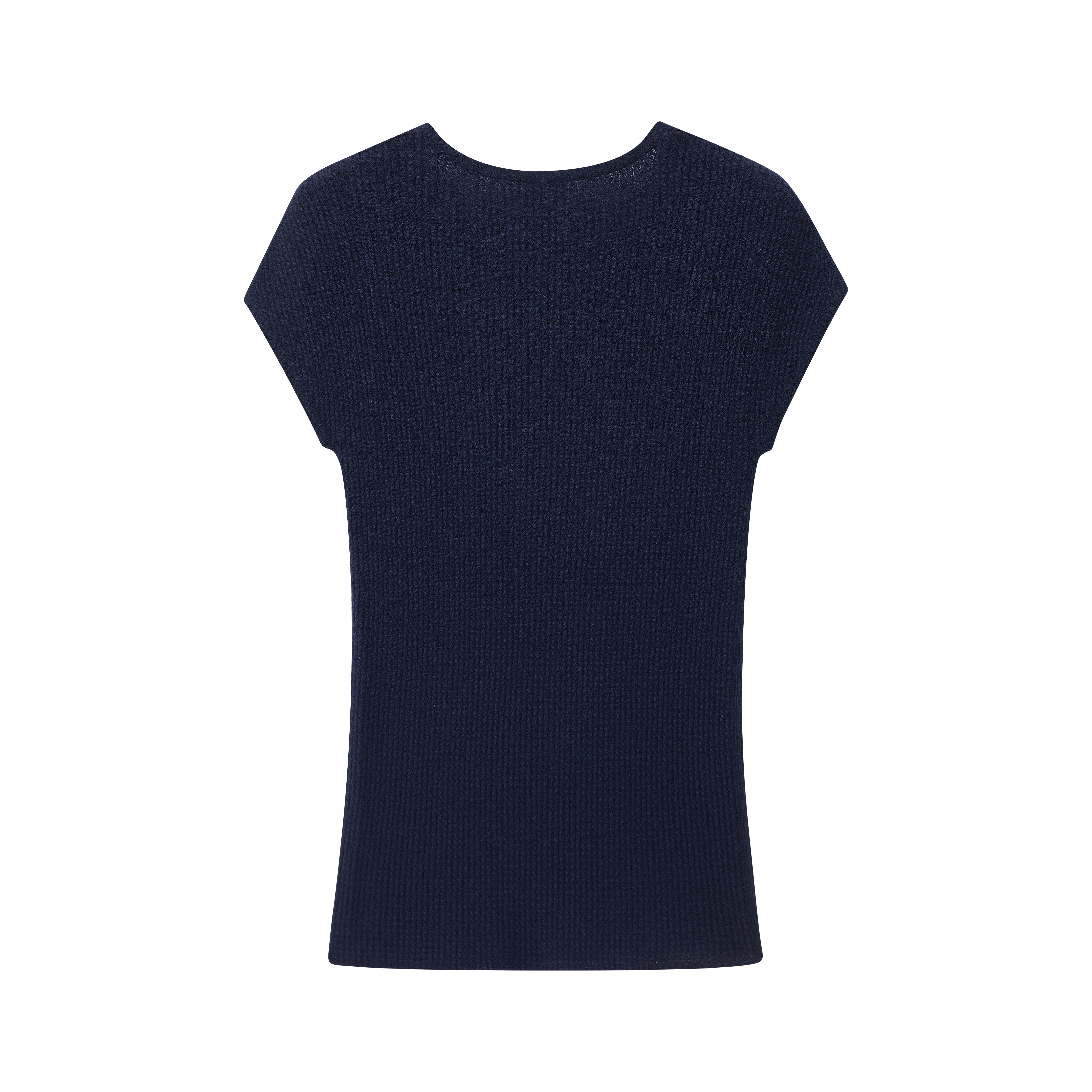 针织衫拥有良好的伸缩性,精致的绞花搭配圆领收身的短袖设计,可以很好的修饰身材。