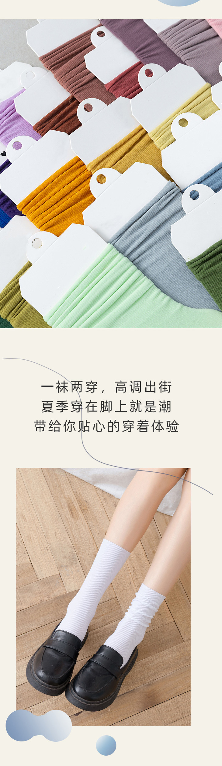 超值10双闭眼入!【潮爽!ins百搭冰冰袜!】一袜两穿,天鹅绒纯色中筒袜,卷边jk日系ins堆堆袜,严选精梳棉。