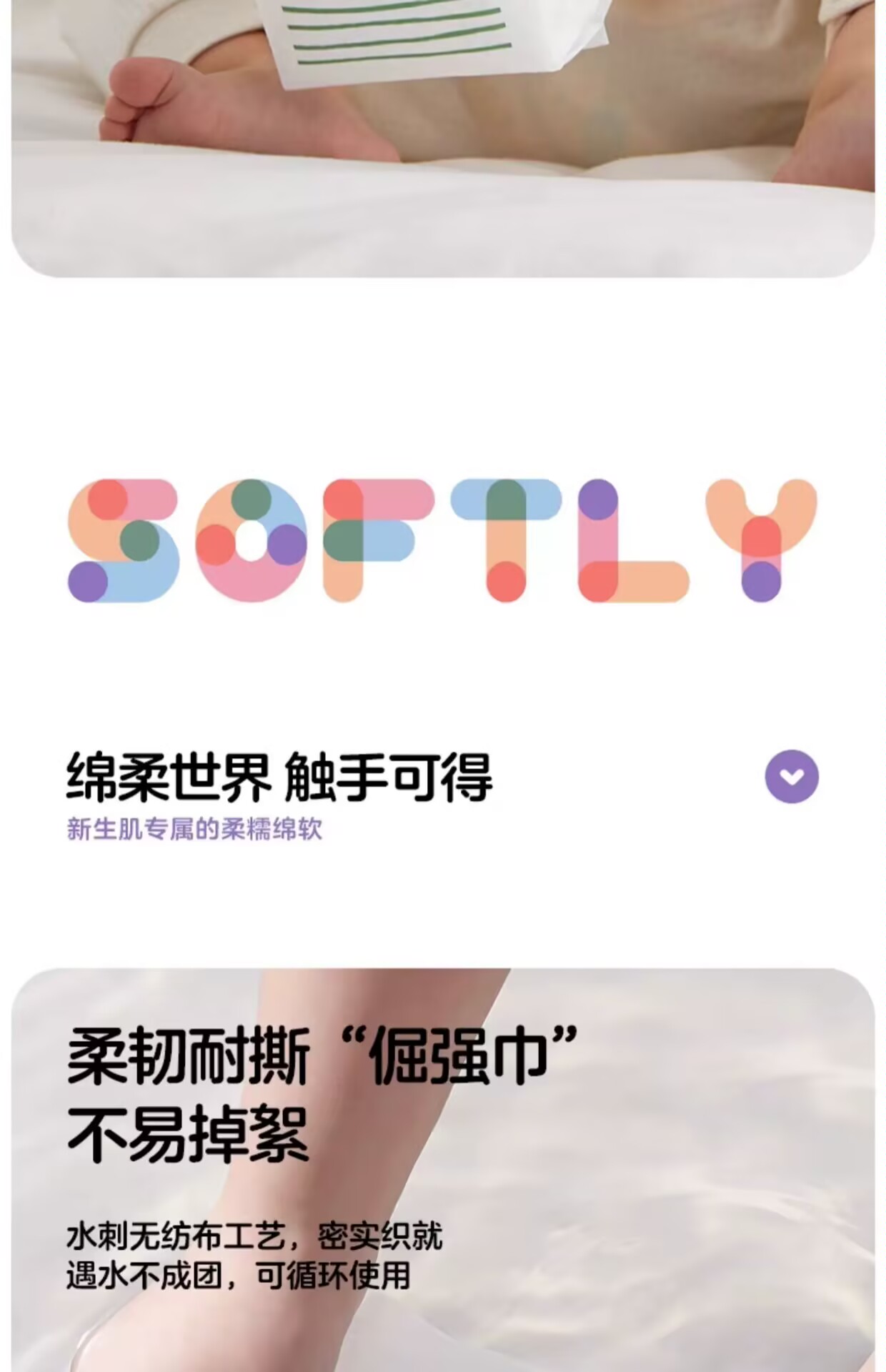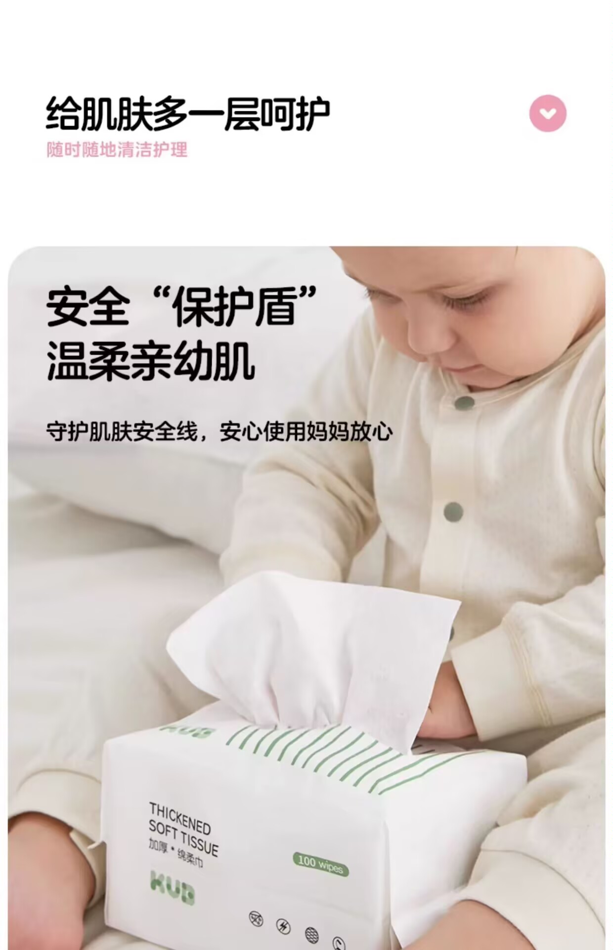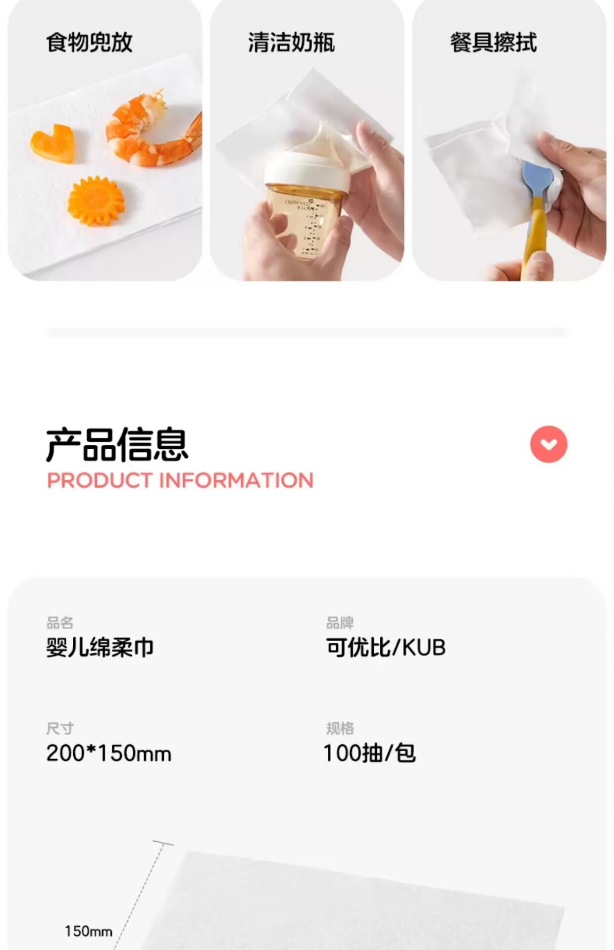 【秒杀】KUB可优比婴儿绵柔巾非棉柔巾手口屁专用干湿两用巾100抽*6包