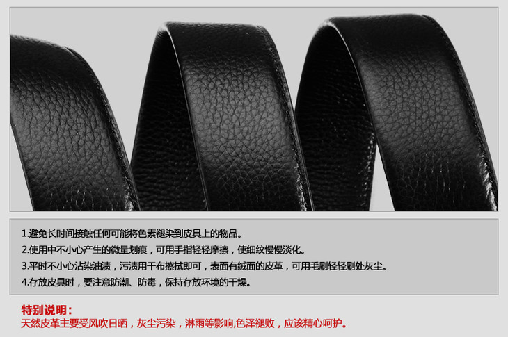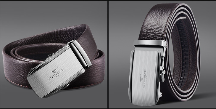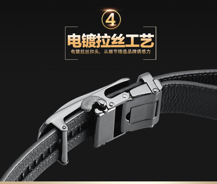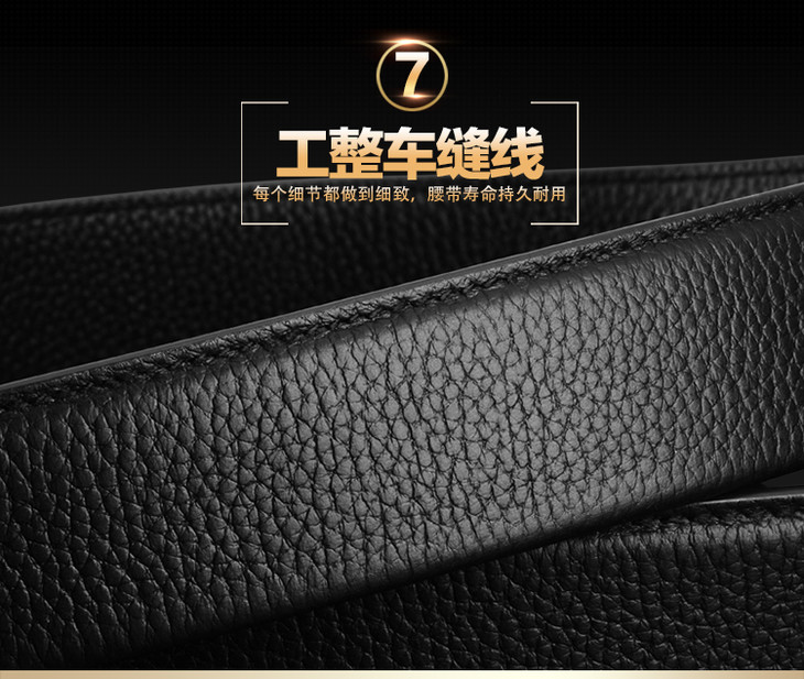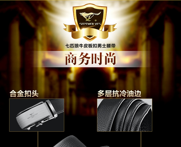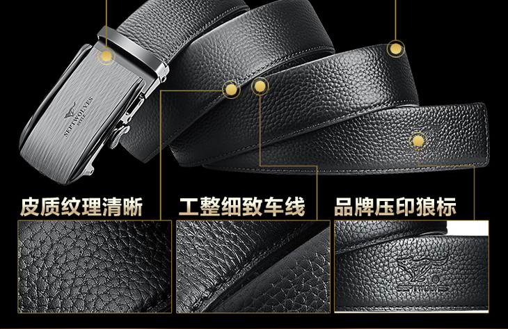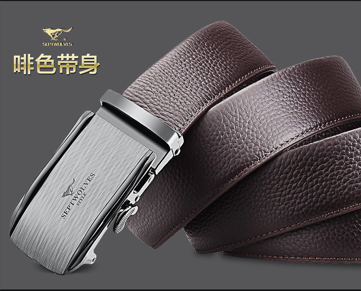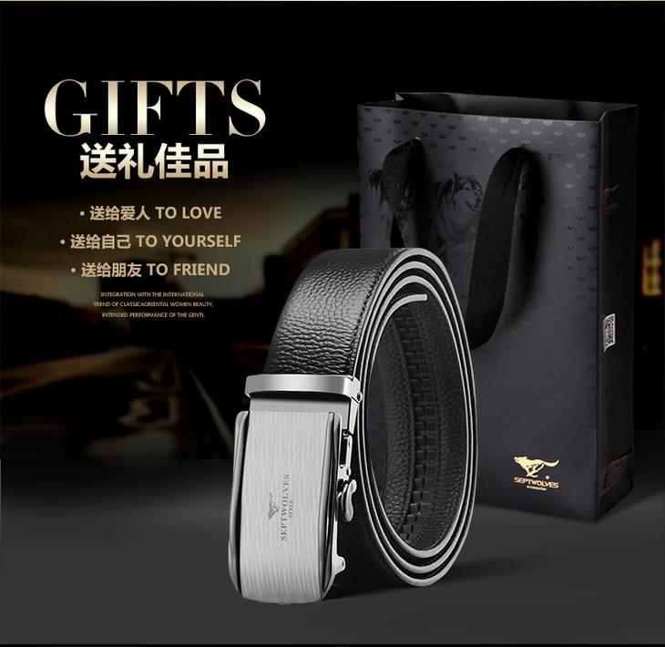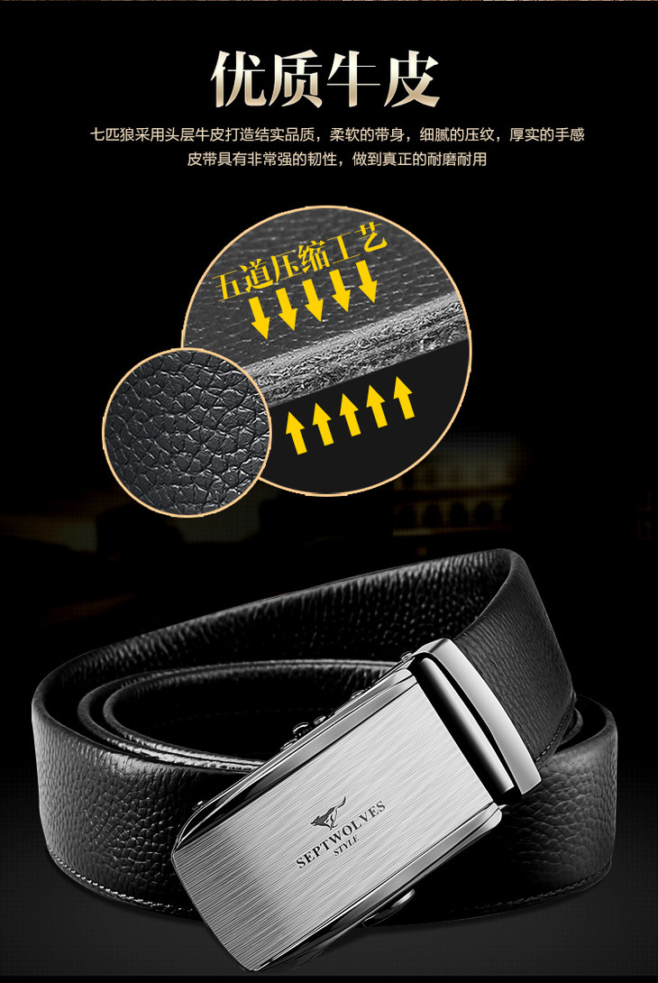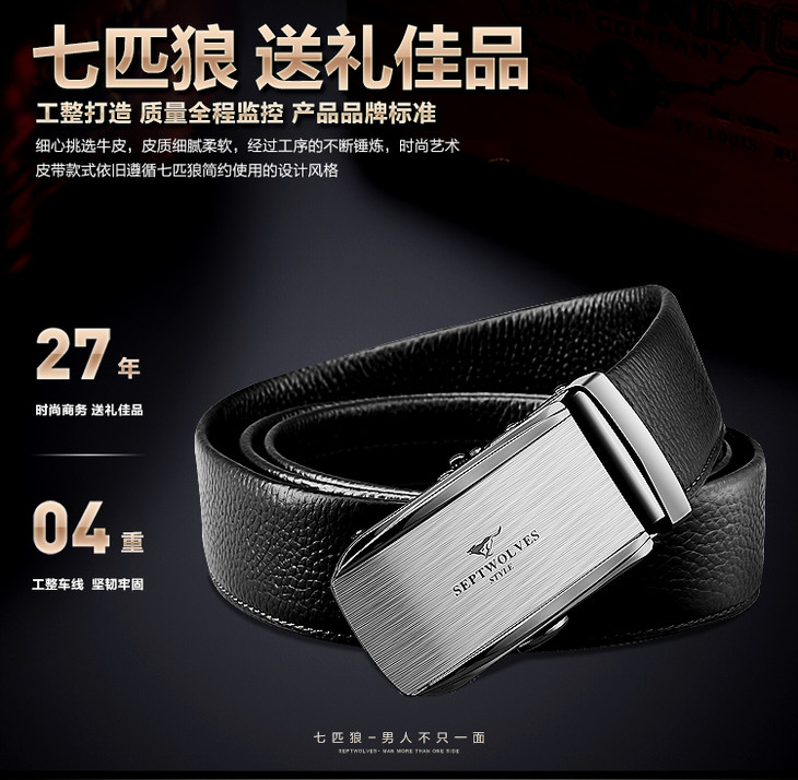 七匹狼(SEPTWOLVES)皮带男士 自动扣头层牛皮商务休闲青年裤腰带7A713045000-27黑色