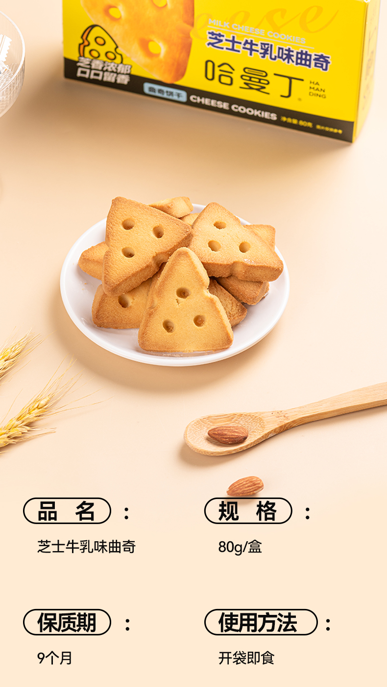 【芝士浓郁 口口留香】哈曼丁芝士曲奇饼干(牛乳味)真材实料可口美味休闲零食 早餐代餐香甜酥松小饼干 80g/盒