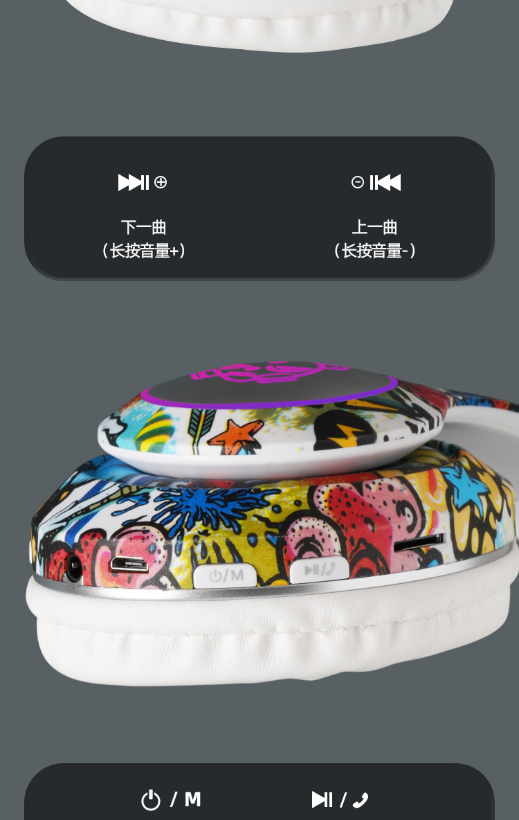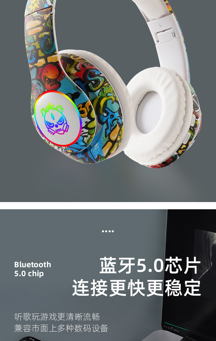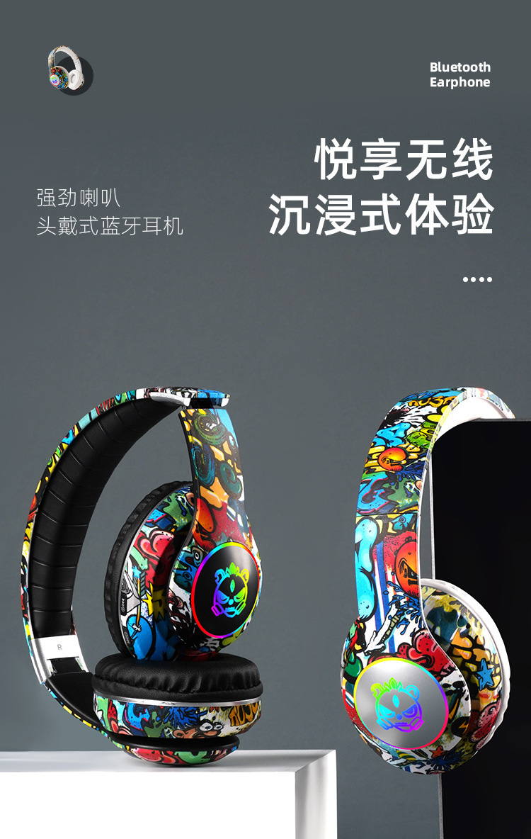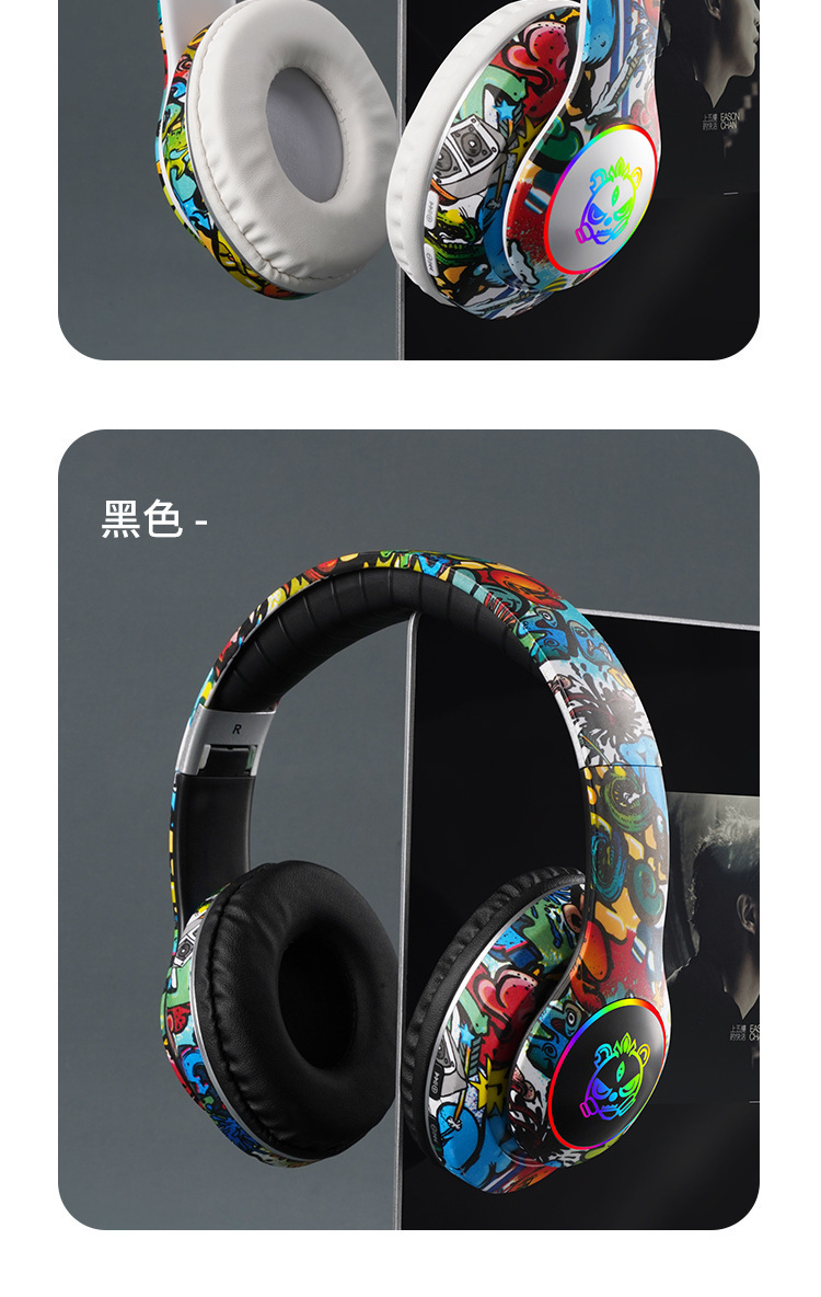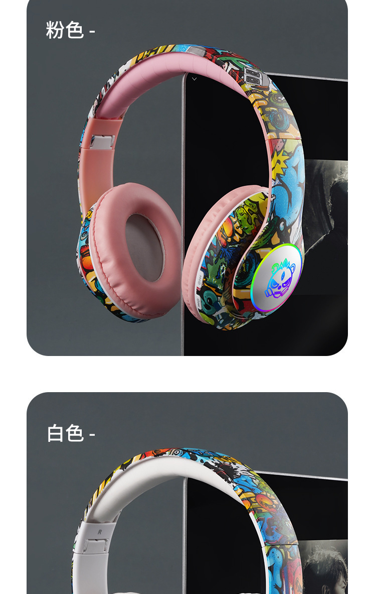 【强劲喇叭,头戴式蓝牙耳机!】爆款国潮涂鸦儿童无线蓝牙耳机 头戴式降噪全包耳机 手机运动游戏耳麦-QB