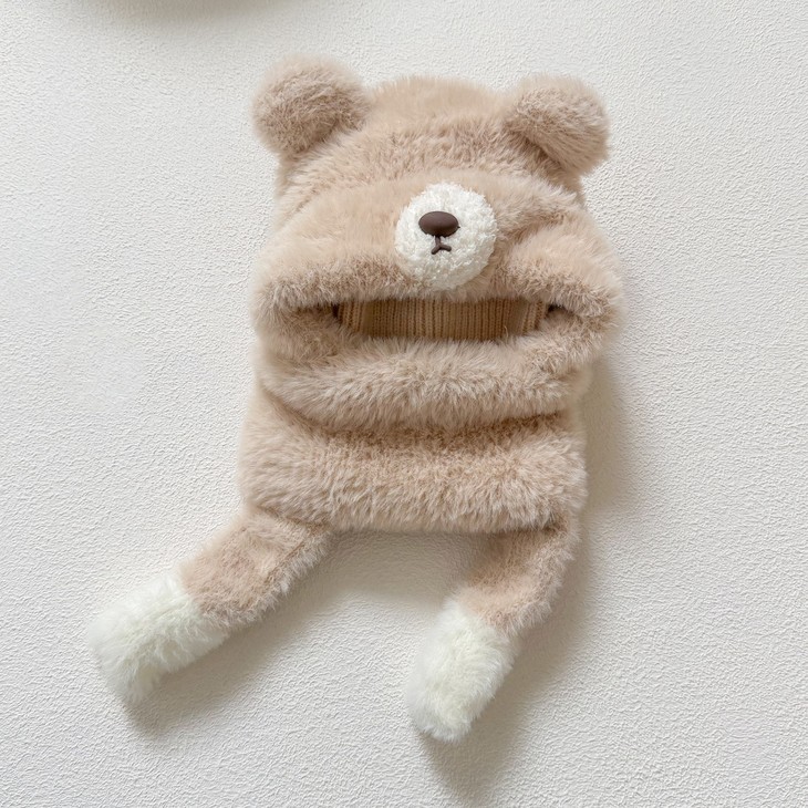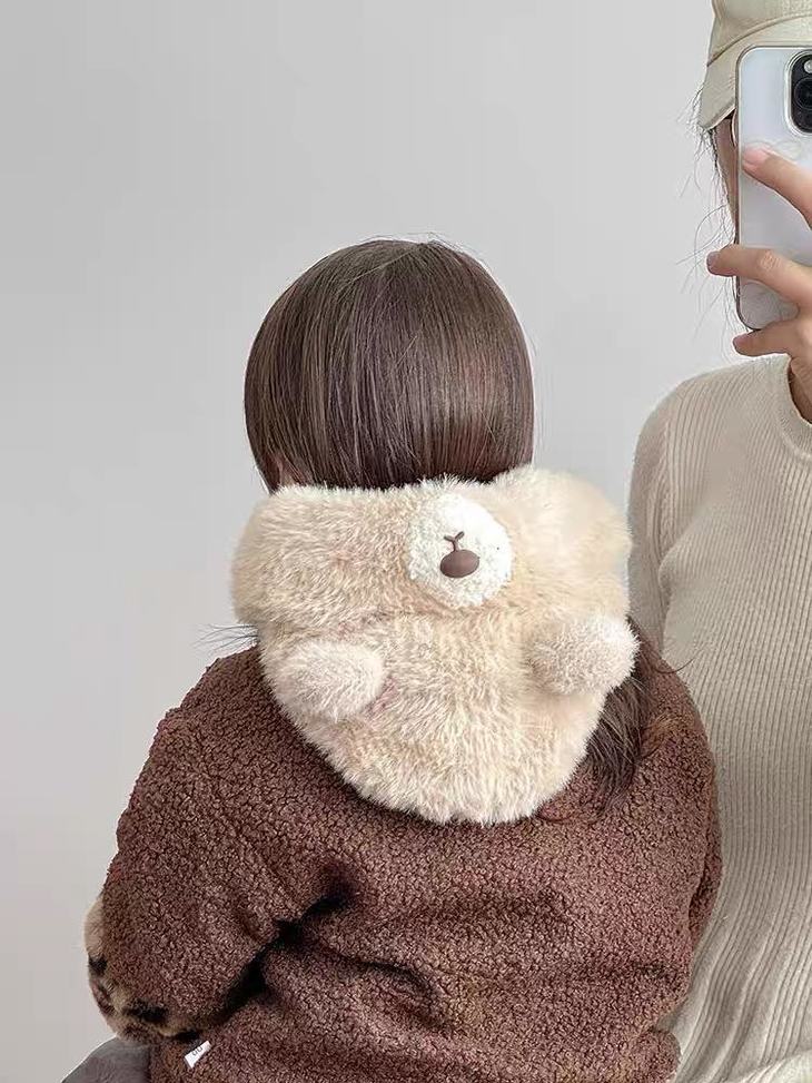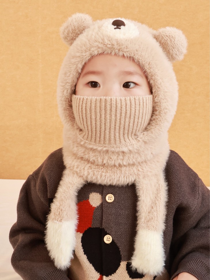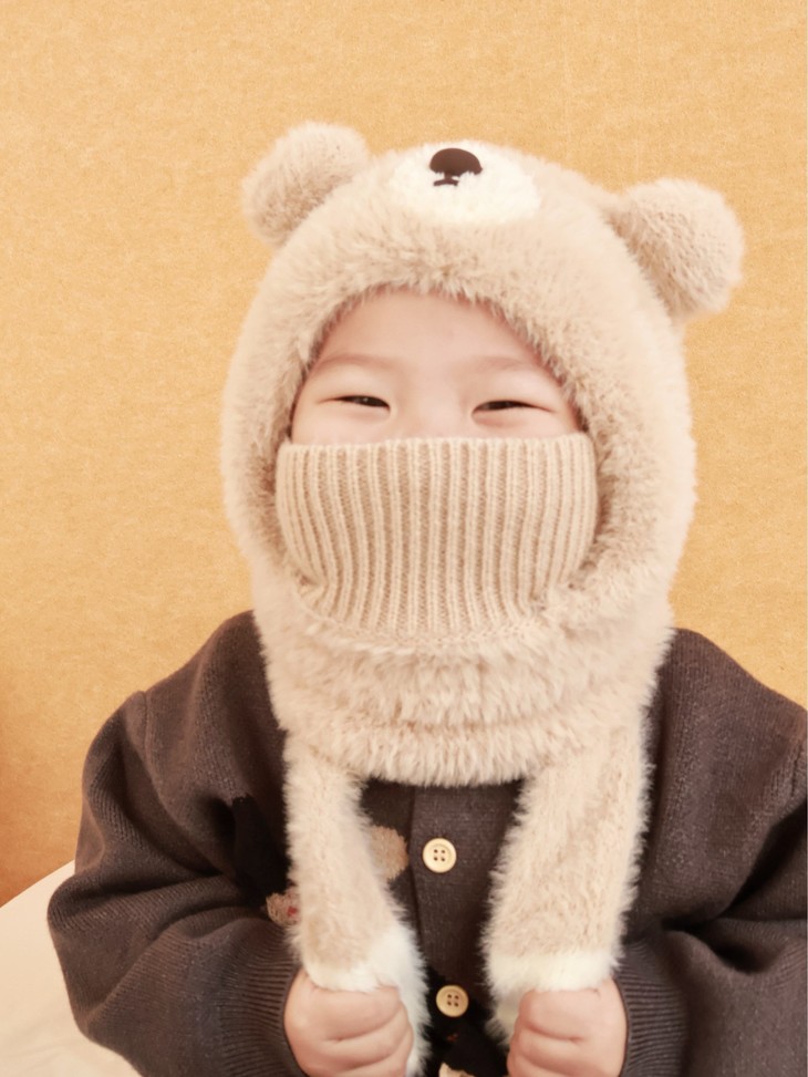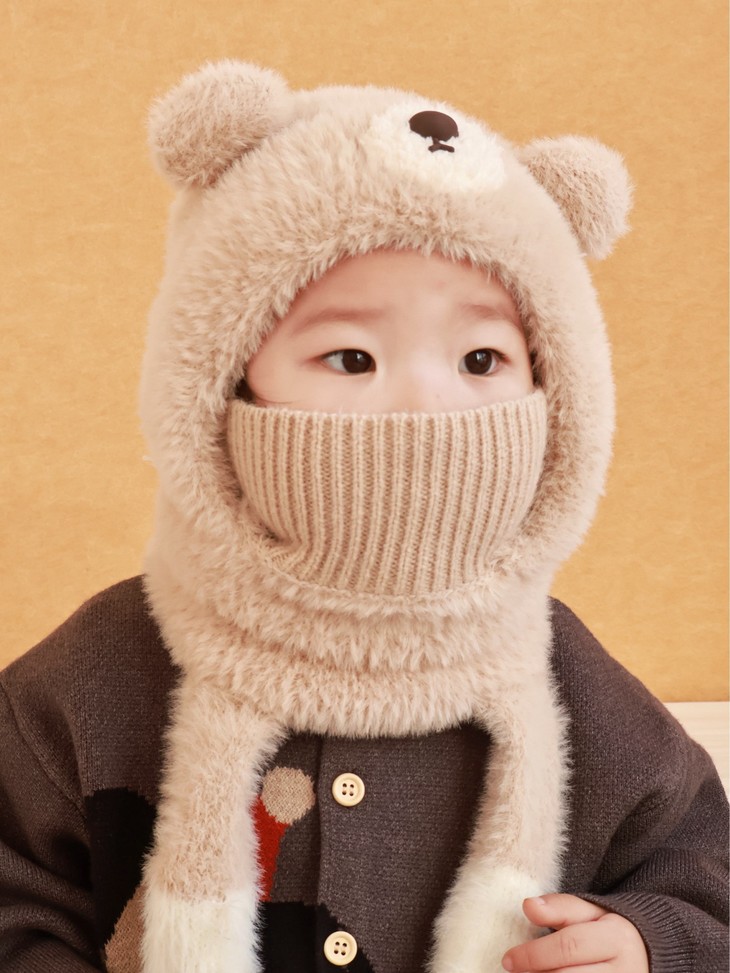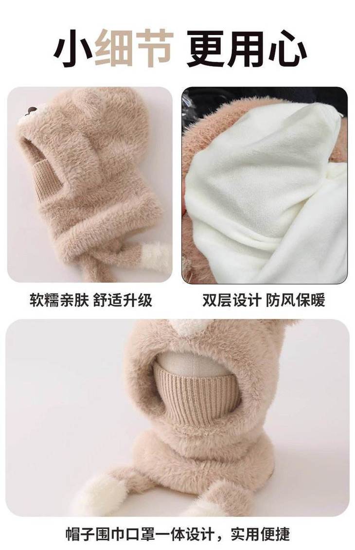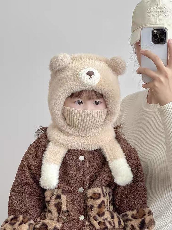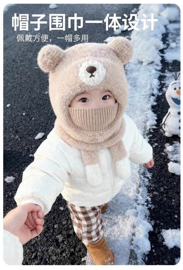 ❄保命级保暖!把寒风按在门外 带娃出门,以前得帽子+围巾+耳罩+口罩层层叠, 现在这一顶直接包揽所有!护耳+围脖+口罩一体 熊耳朵是加厚毛绒护耳,围脖能裹到锁骨, 连口罩都是针织+毛绒双层,寒风根本钻不进缝隙! 带娃玩雪半小时,小脸蛋还是暖乎乎的~