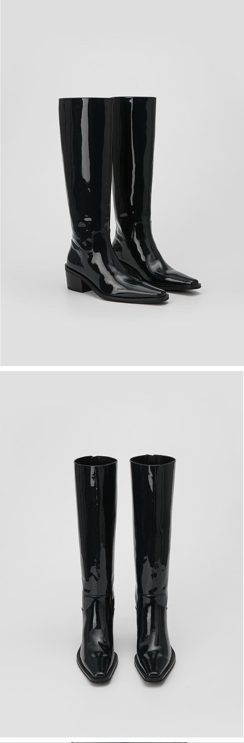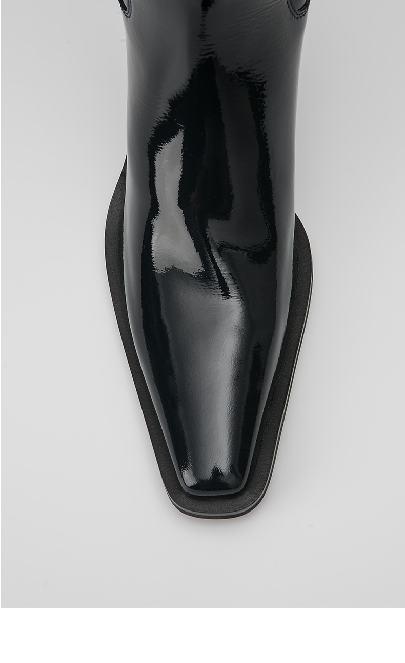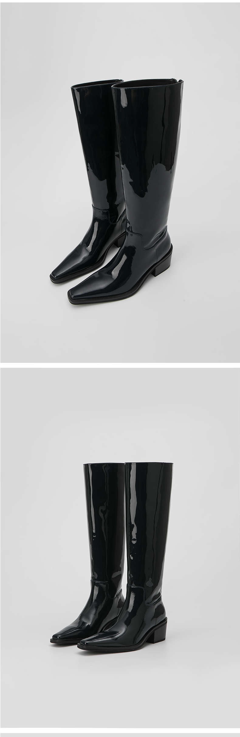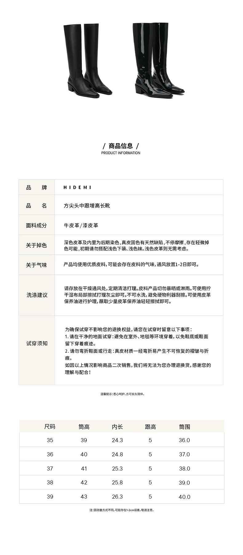 HIDEMI 牛漆皮/牛皮方尖头擦色做旧感女鞋中跟增高长靴