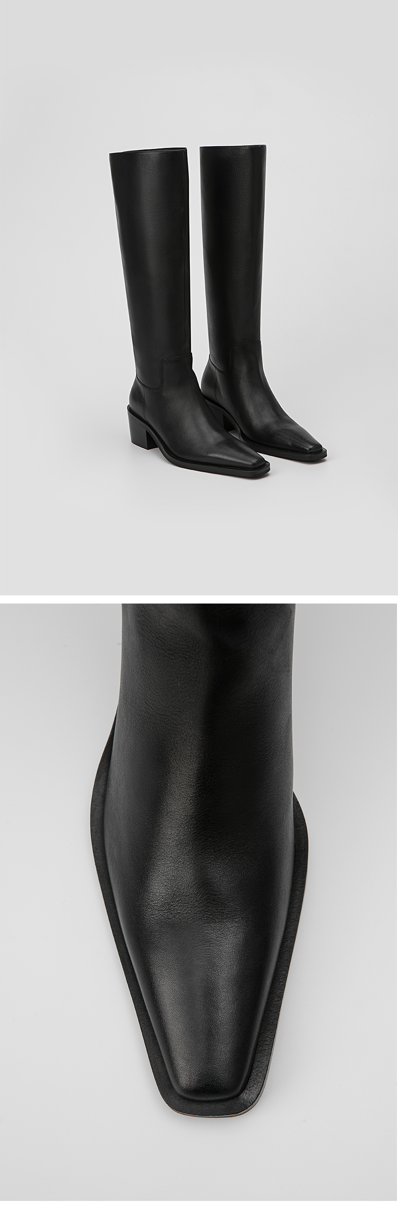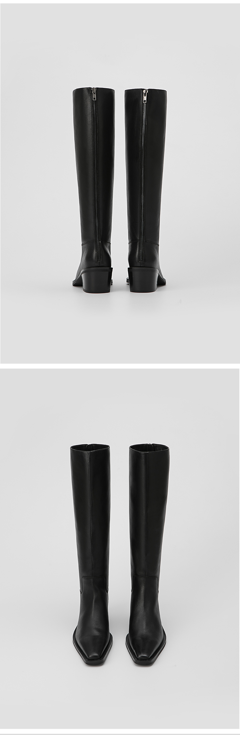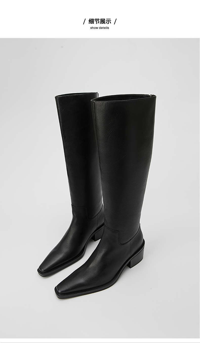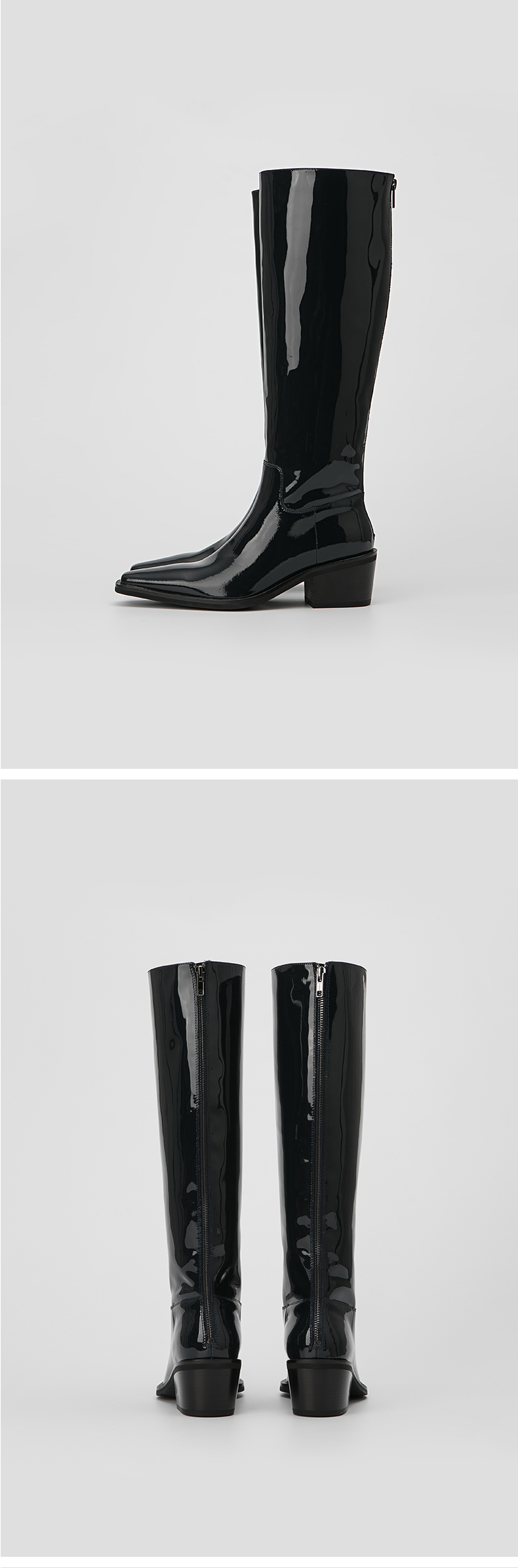 HIDEMI 牛漆皮/牛皮方尖头擦色做旧感女鞋中跟增高长靴