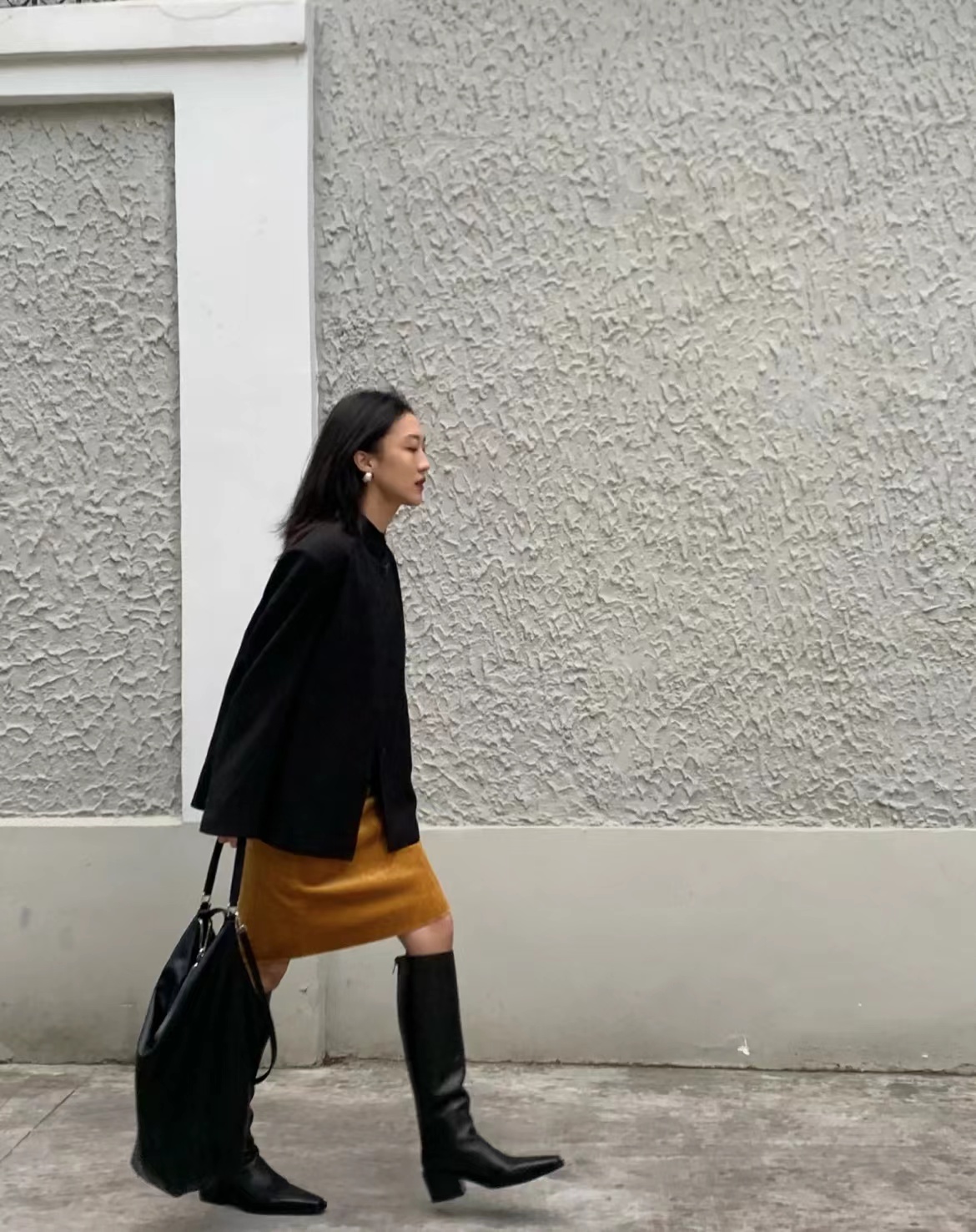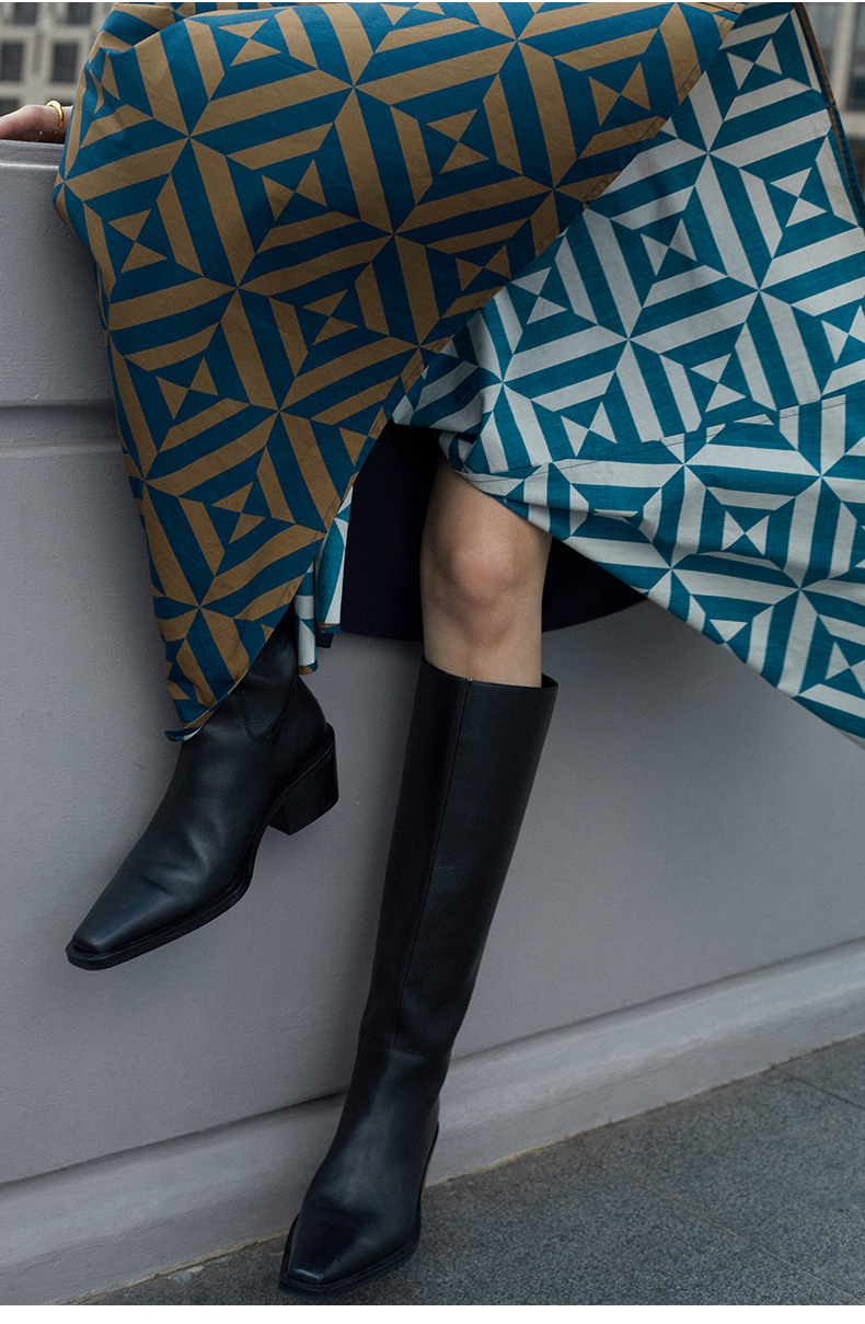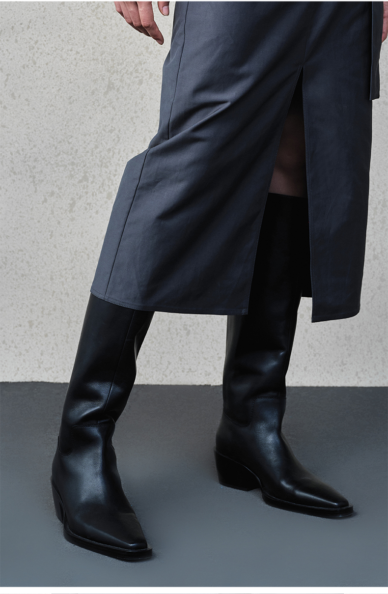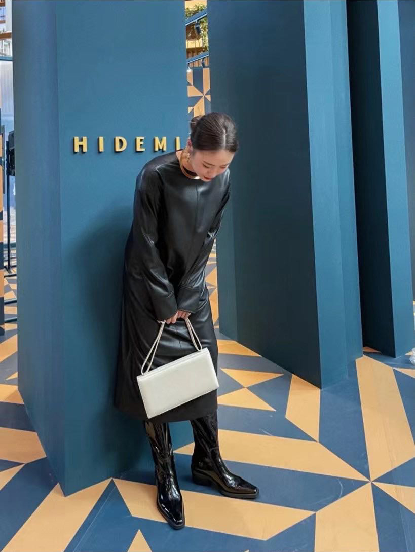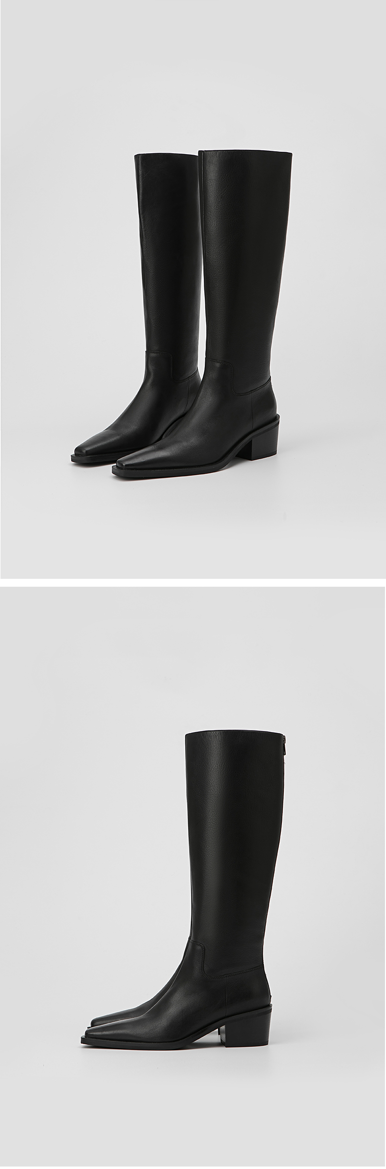 HIDEMI 牛漆皮/牛皮方尖头擦色做旧感女鞋中跟增高长靴