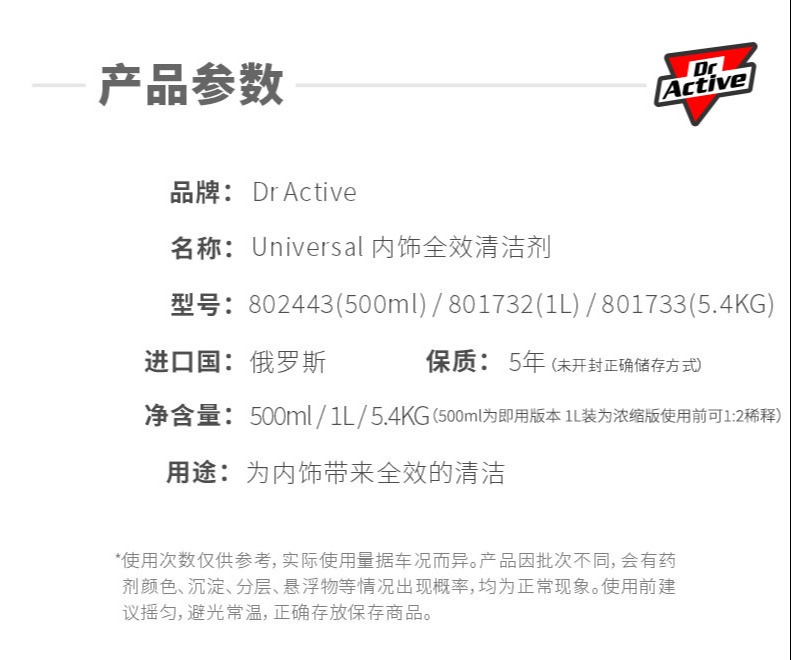 Dr.Active 炫动博士 Universal内饰全效清洁剂多功能塑料皮革织