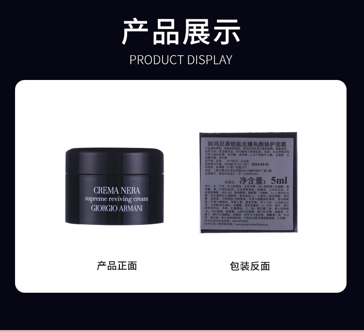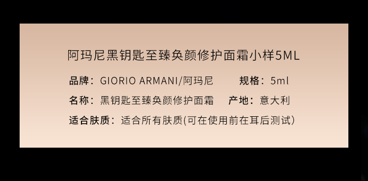 阿玛尼黑钥匙至臻奂颜修护面霜5ml黑曜石保湿修护滋润紧致抗衰老