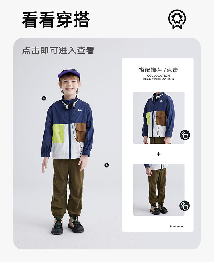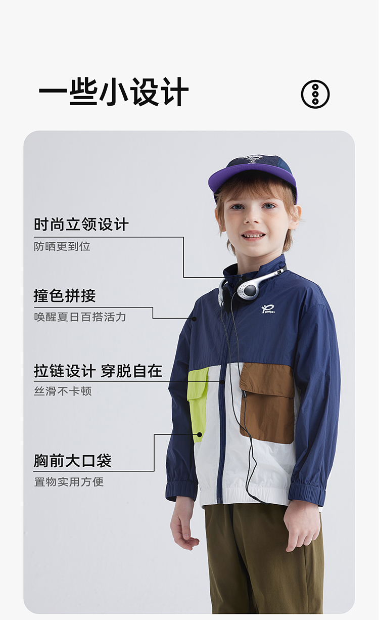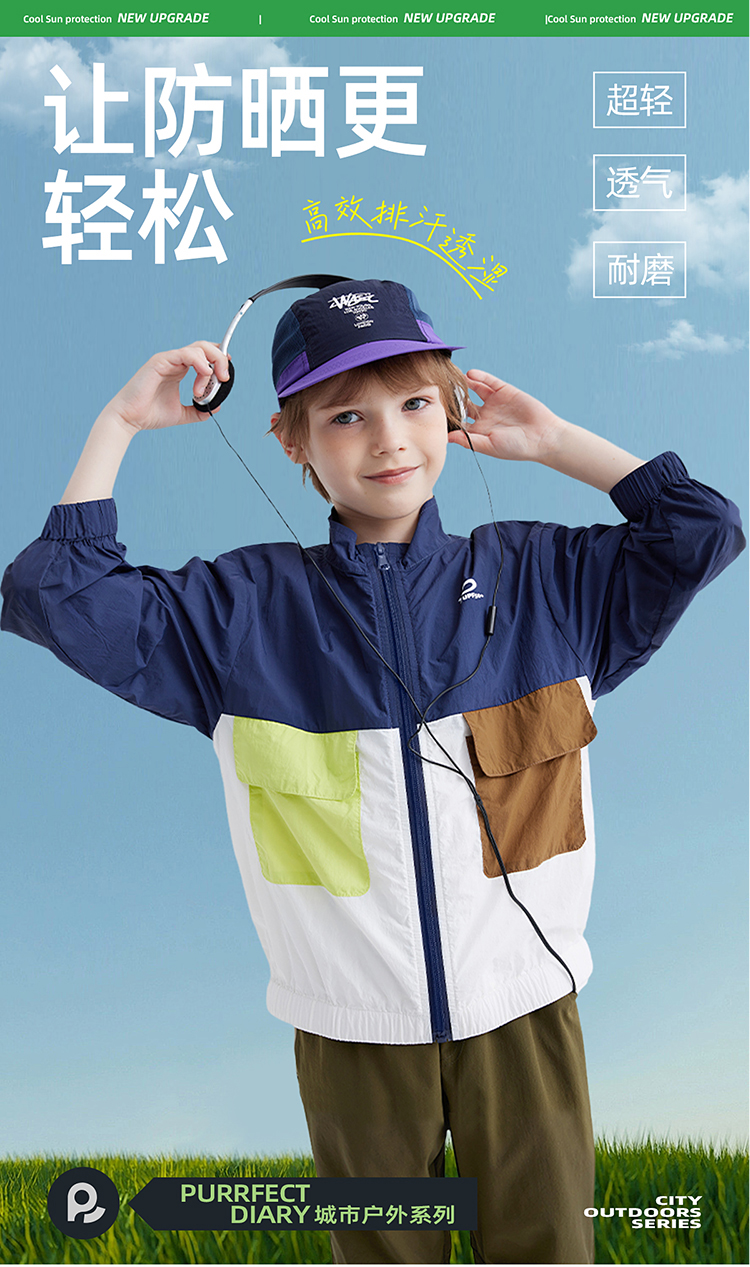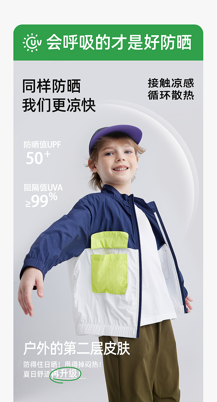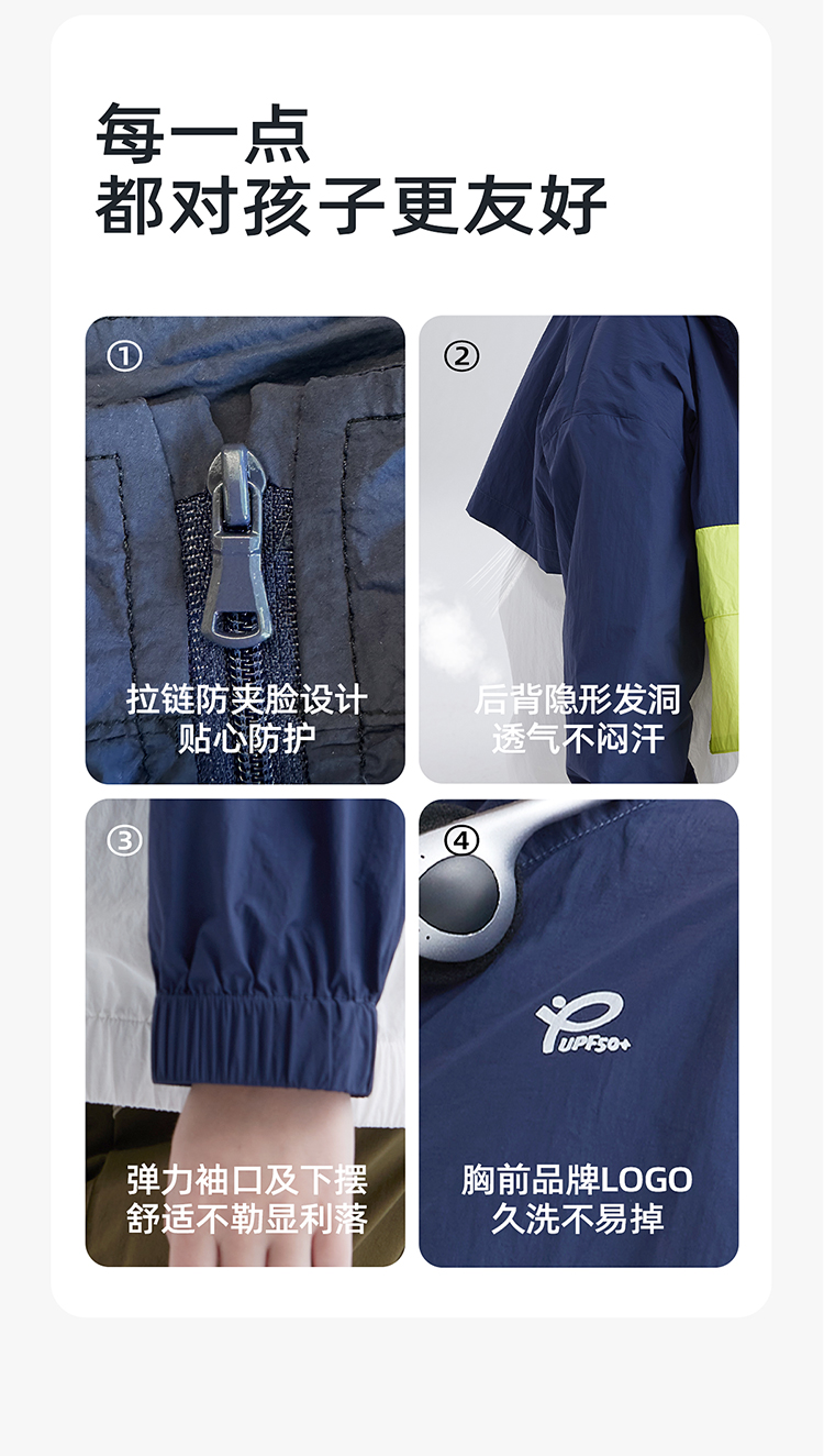 【抗撕裂防晒衣 UPF50+】儿童撞色口袋防晒服 PXW2401