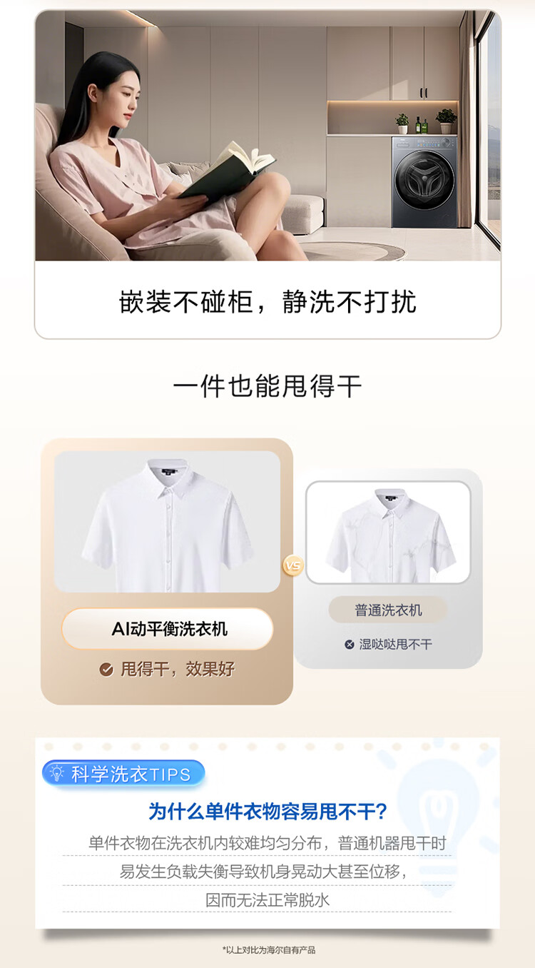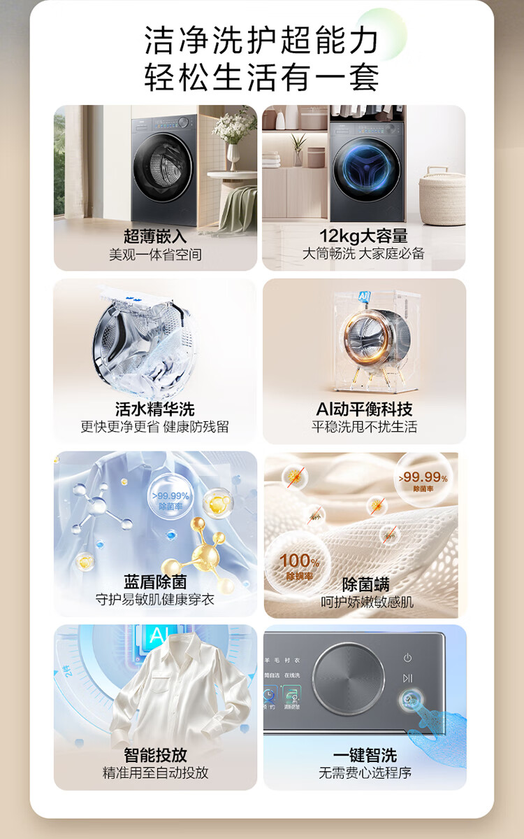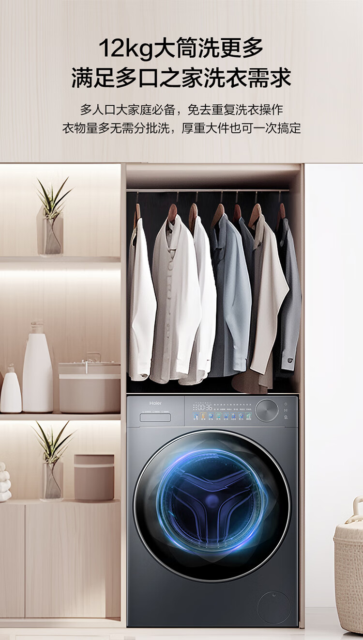 海尔(Haier)滚筒洗衣机12公斤 25年新品 全自动 一级变频+570超薄平嵌+蓝盾除菌+精华洗+智投XQG120-LE58A2U1