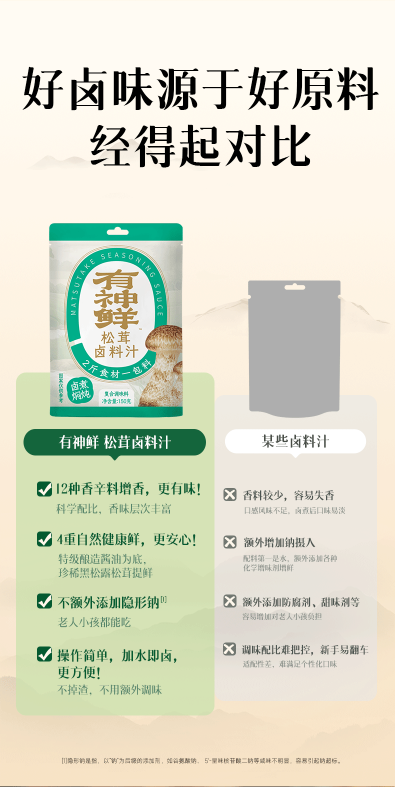 有神鲜松茸卤料汁150g*1袋(子品牌)生产日期2025年8月保质期12个月