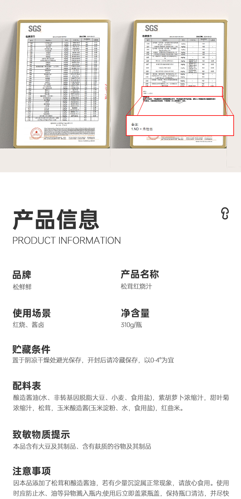 松茸红烧汁310g*1瓶生产日期2025年7月保质期12个月
