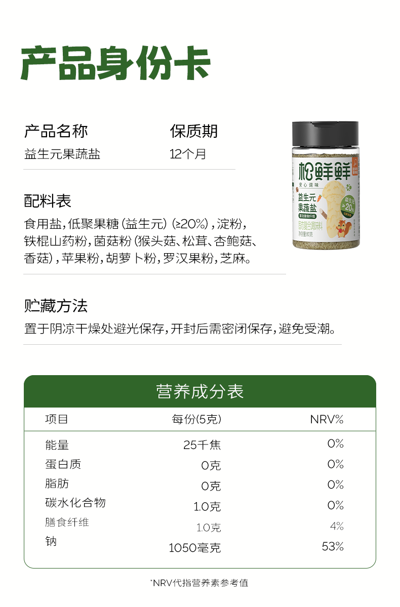 益生元果蔬盐80g*1瓶(宝宝辅食盐)生产日期2025年8月保质期12个月