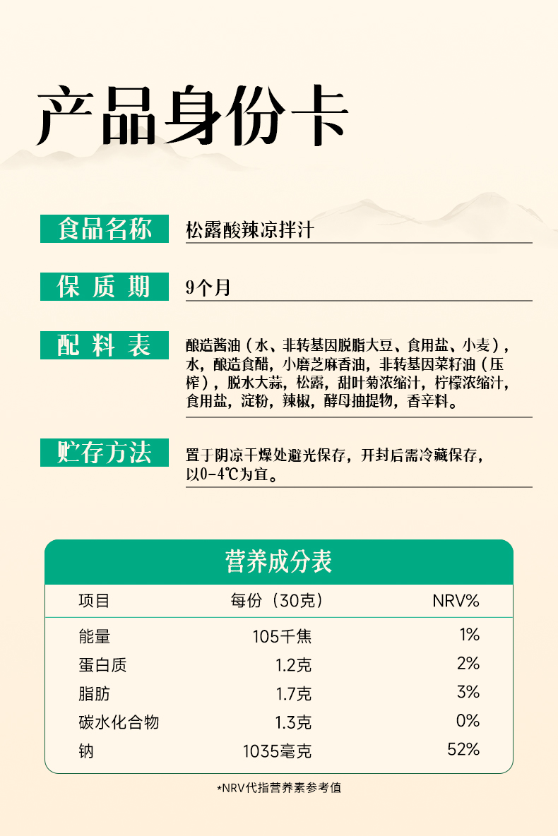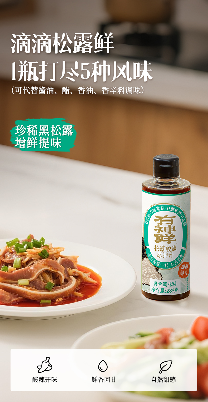 有神鲜酸辣松露凉拌汁288g*1瓶(子品牌)生产日期2025年6月保质期9个月