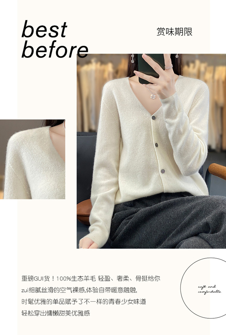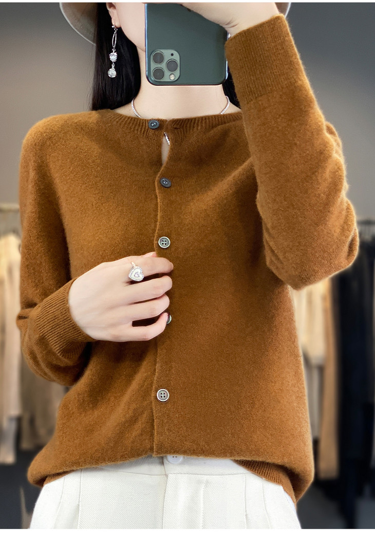 【反季清仓,桂花针羊毛开衫/背心系列】一线成衣圆领领开衫WQ-011,可外穿,可内搭
