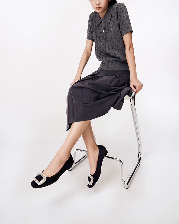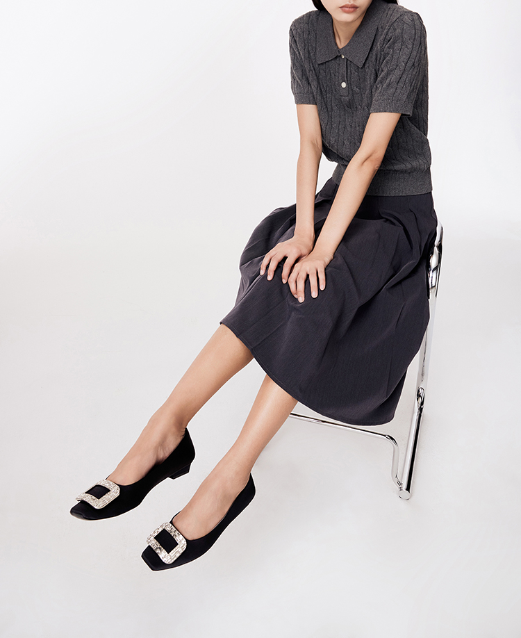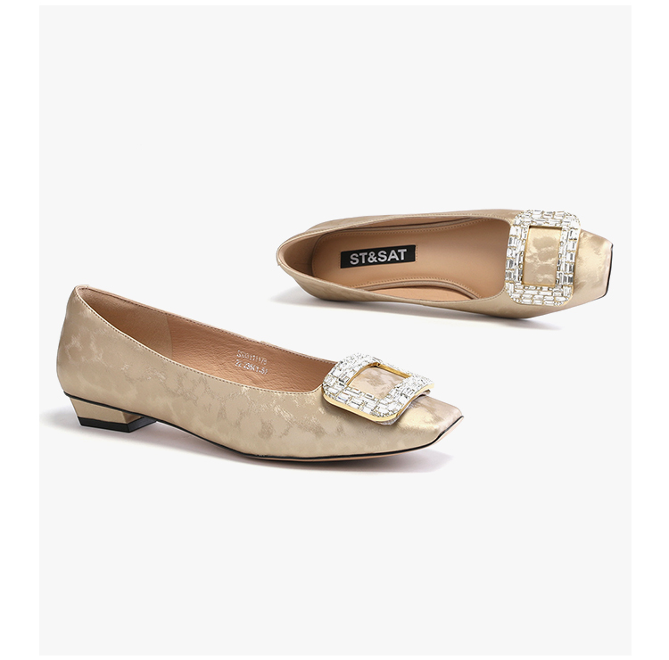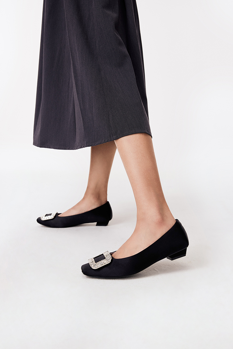【小方镜系列】星期六26春新款优雅风缎面晶扣中低跟单鞋SSE1111030/SSE1111035