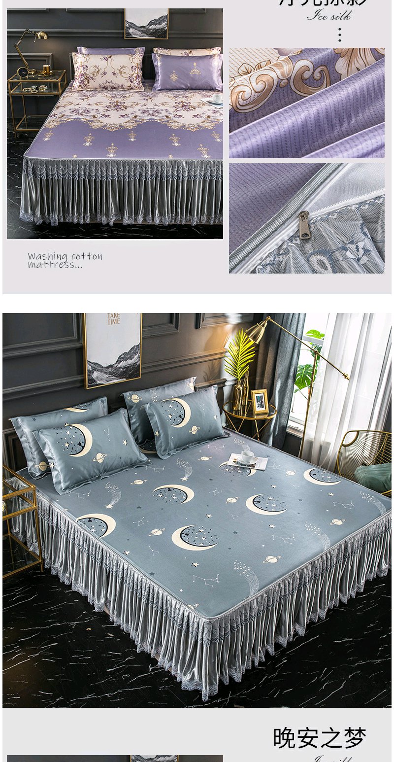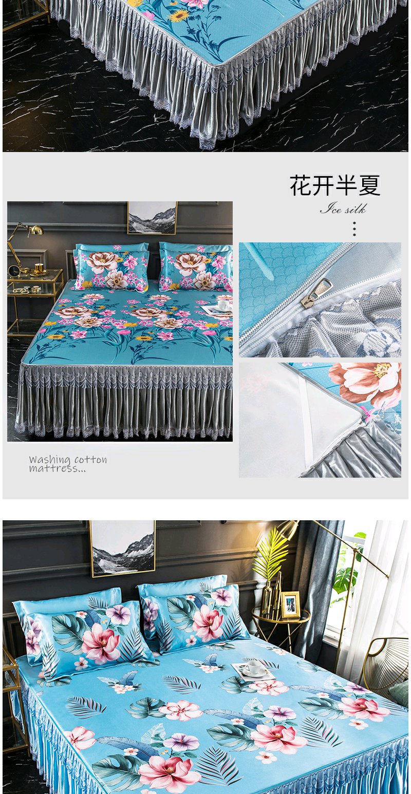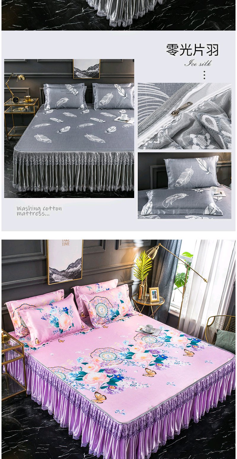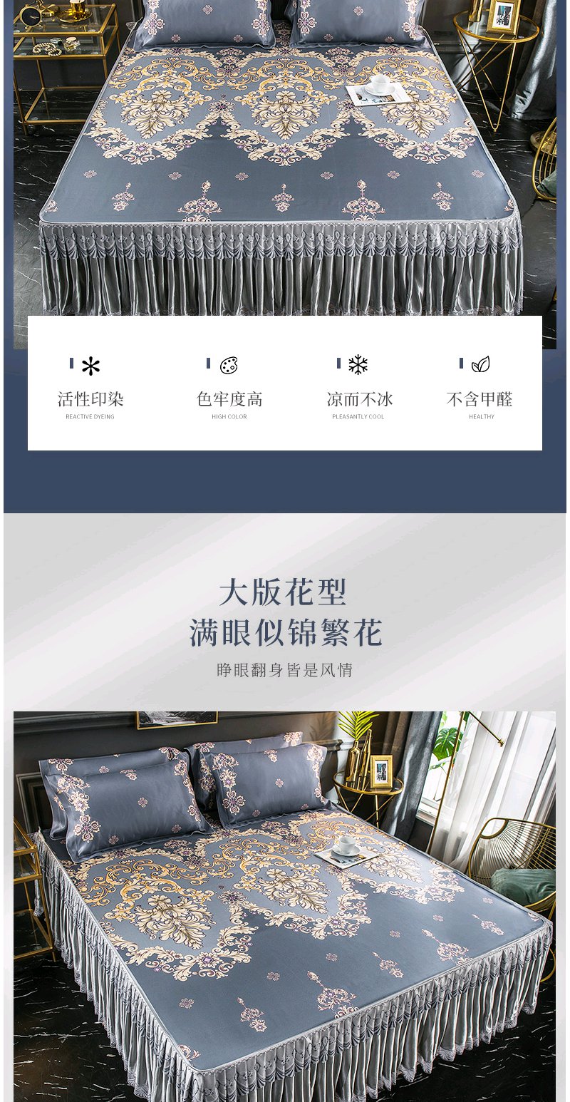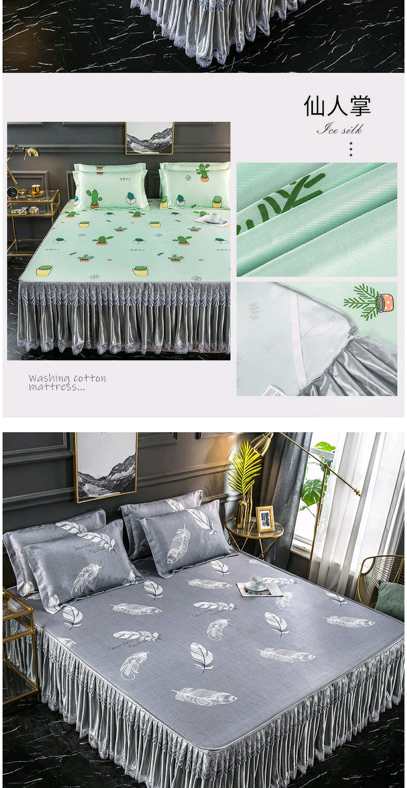 夏季折叠可洗夏天席子 凉席冰丝席床裙款三件套