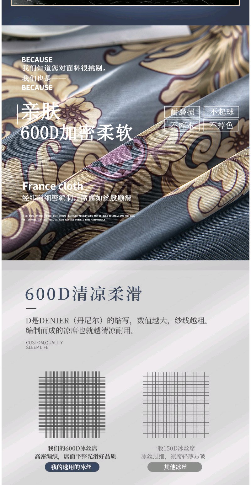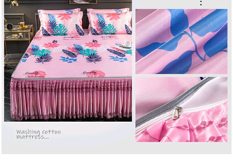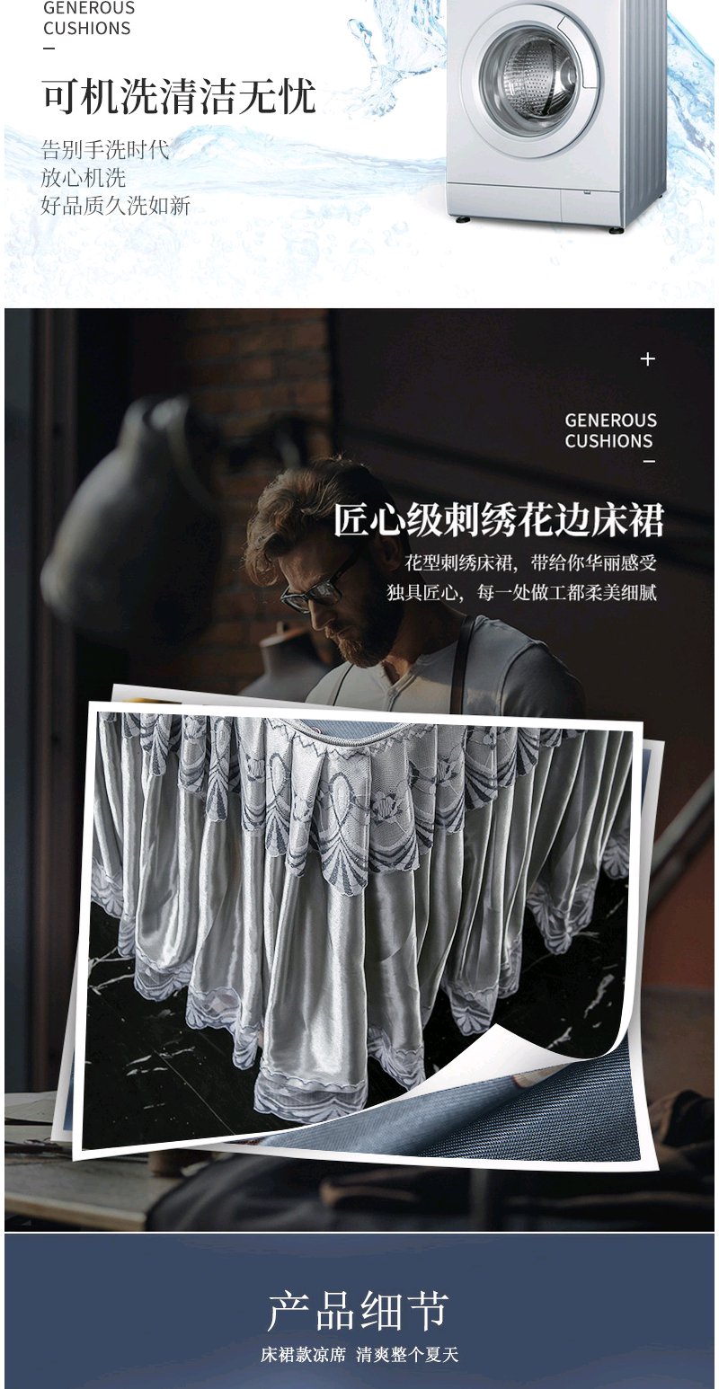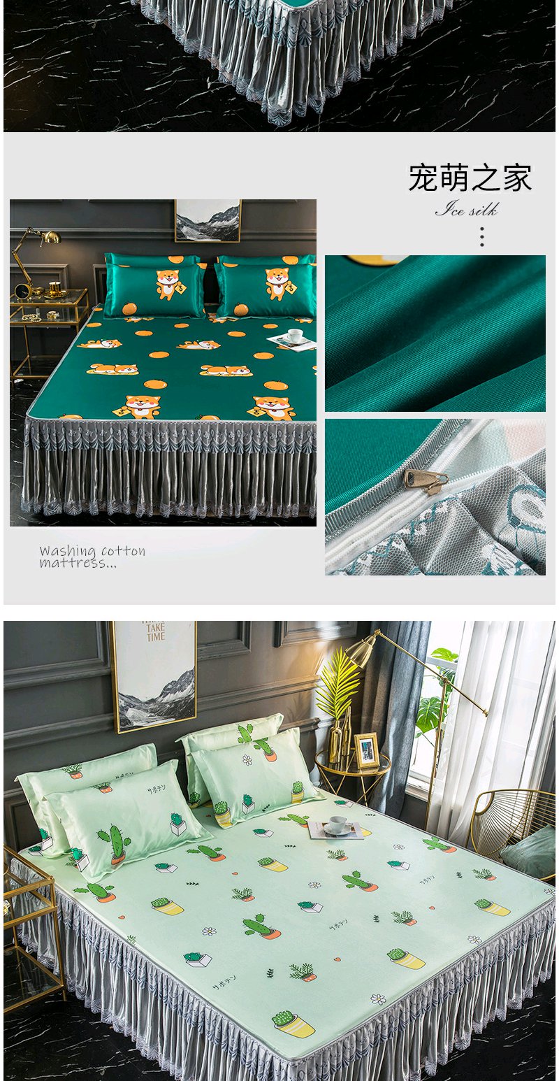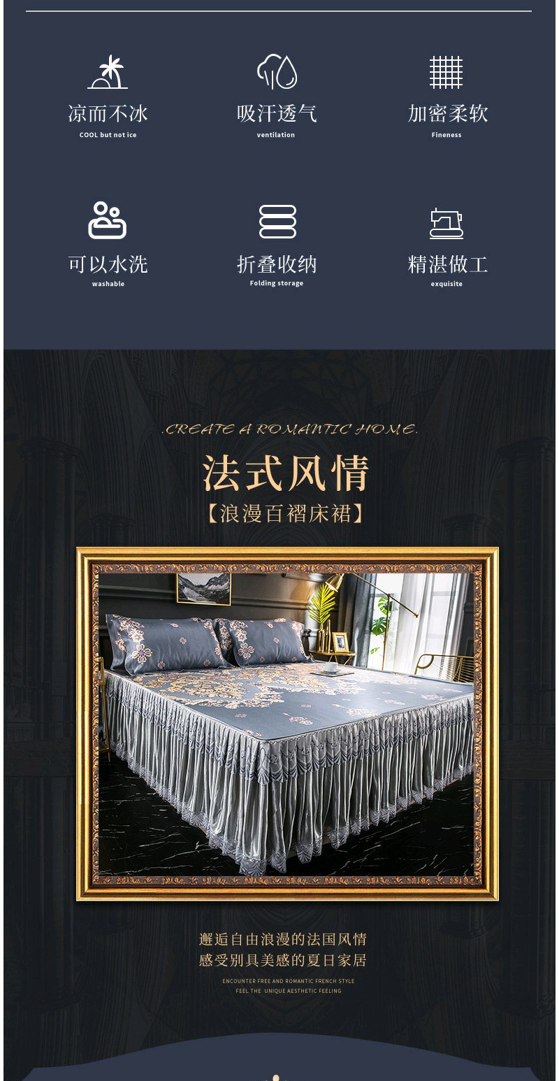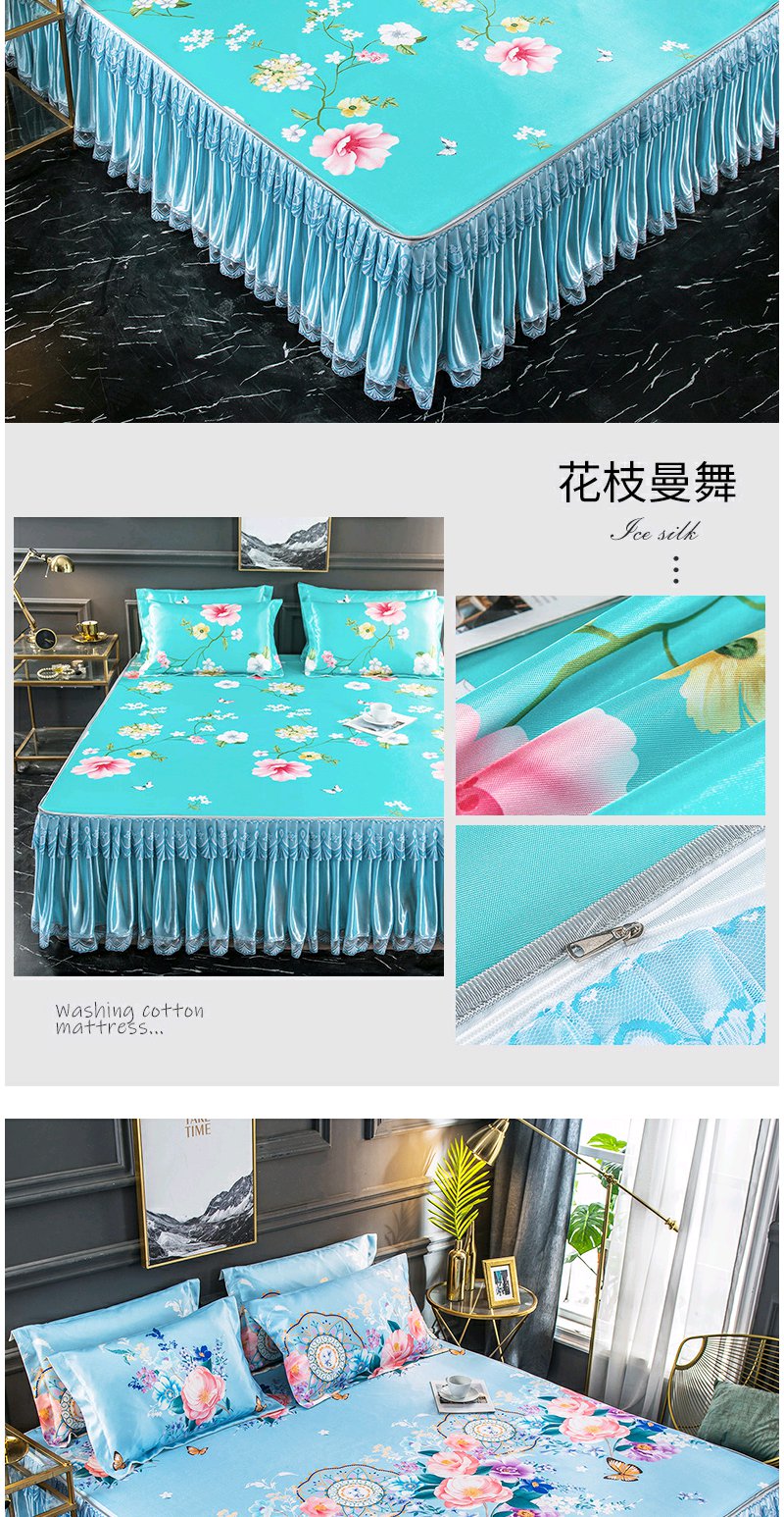 夏季折叠可洗夏天席子 凉席冰丝席床裙款三件套