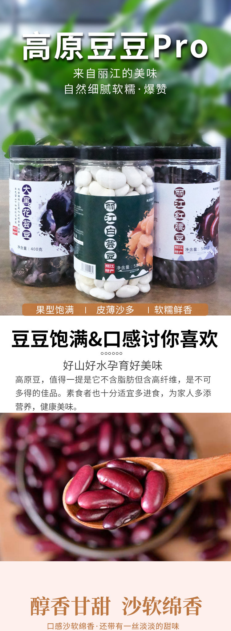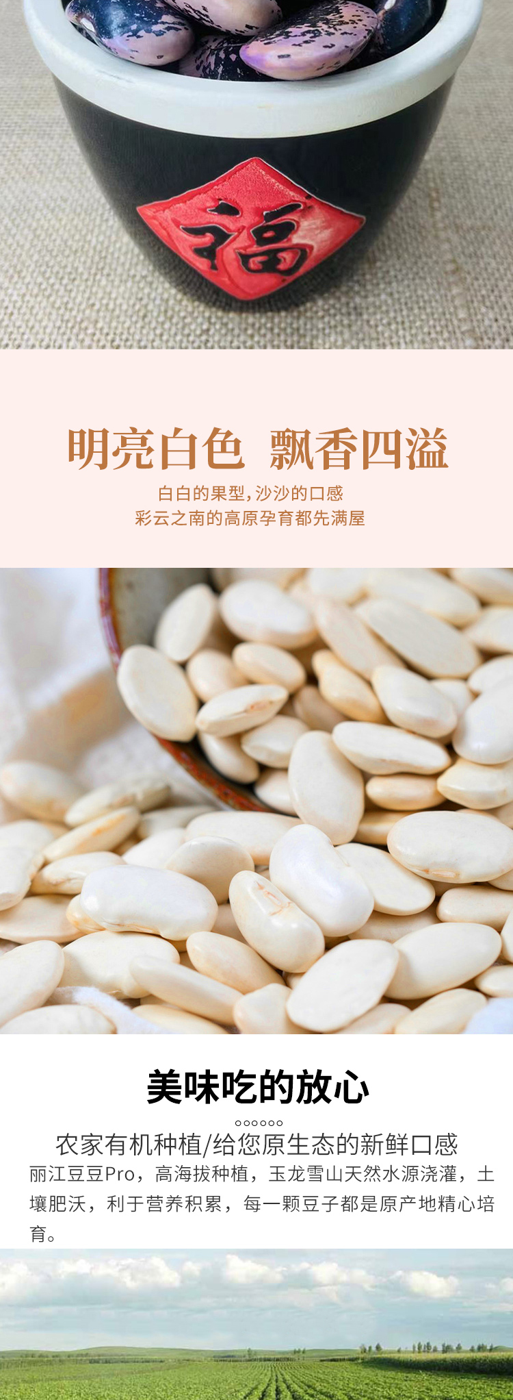 丽江农家豆豆大满贯来咯! 红腰豆+白芸豆+大花芸豆! 香甜软糯,把你食欲值拉满! 自然农法种植,给身体无限减负,减肥女神做减脂餐,正合适! 看看肚子上的赘肉,默默买一箱!