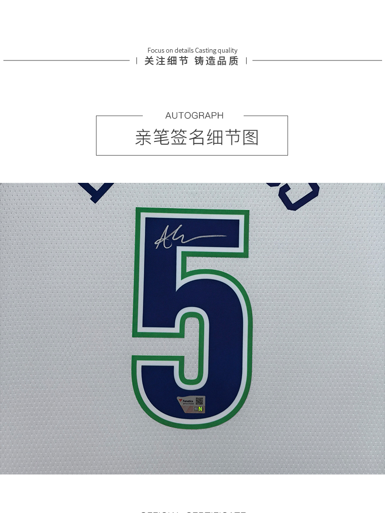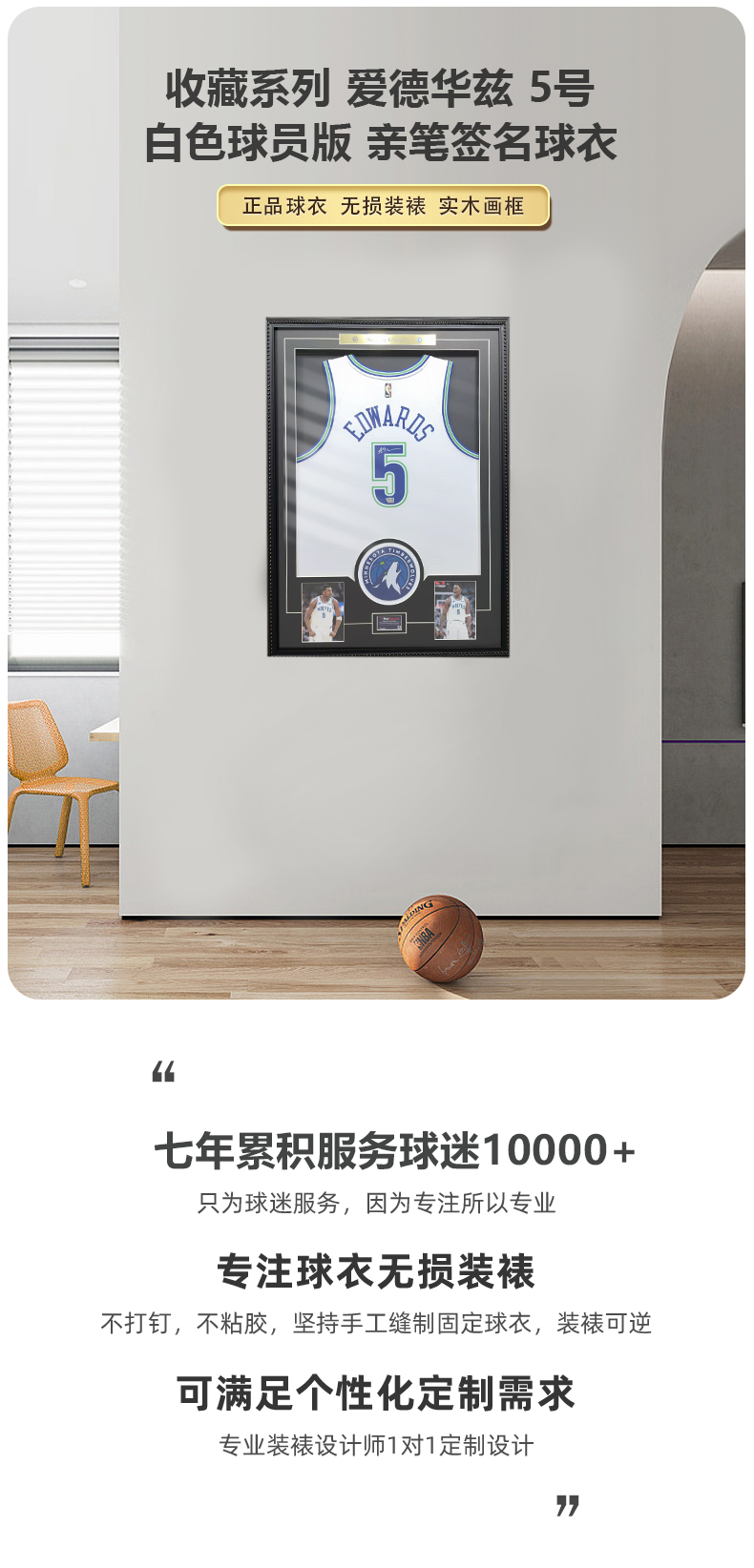 收藏系列 爱德华兹 5号白色球迷版 亲笔签名球衣