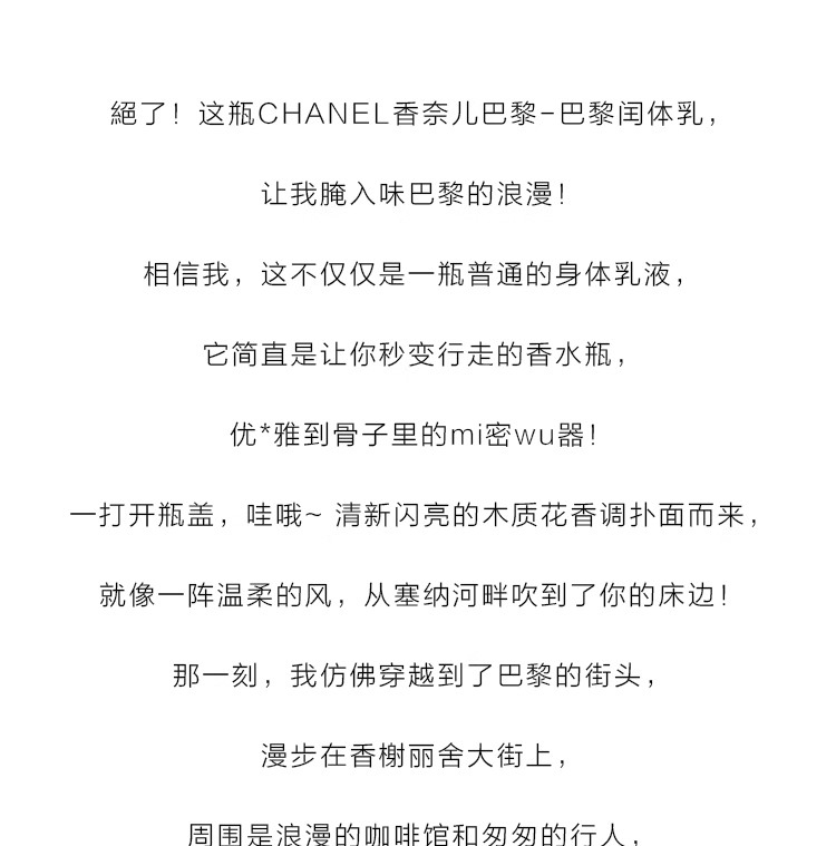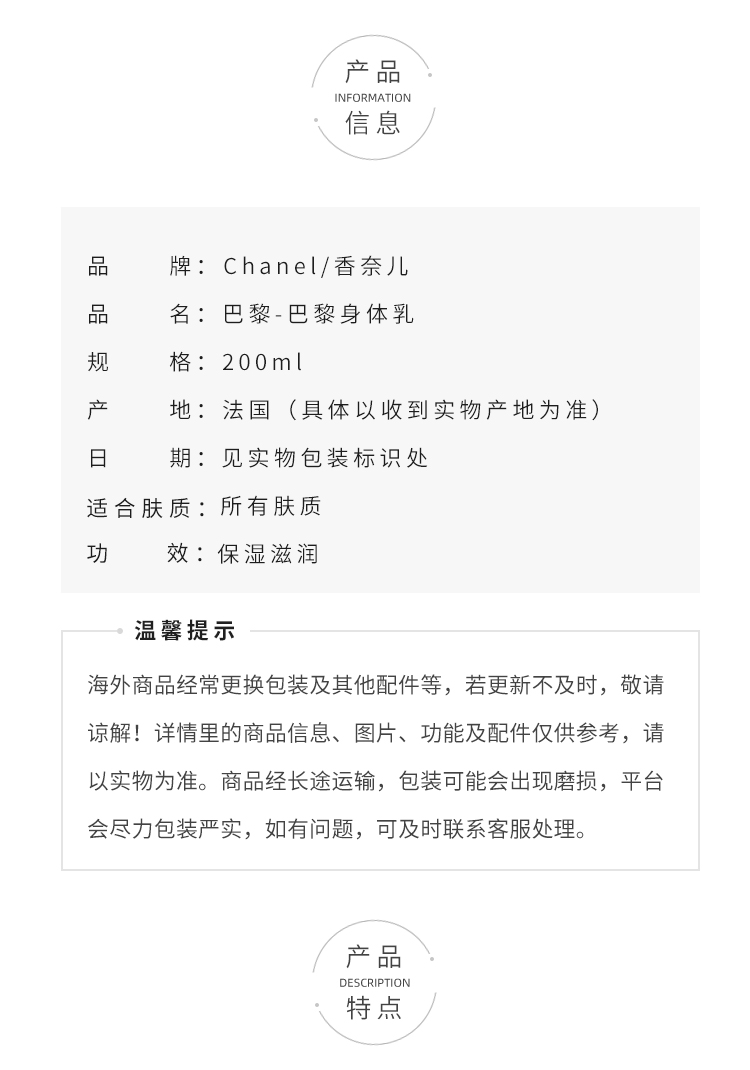 CHANEL香奈儿之水Paris-Paris巴黎身体乳沐浴露200ml保湿滋润 巴黎巴黎身体乳【CDF】