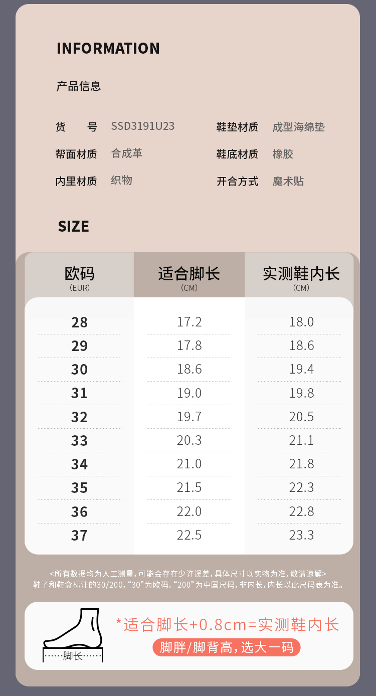 【童鞋】星期六经典贝壳头魔术贴男女童运动板鞋SSD3191U23