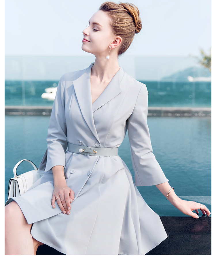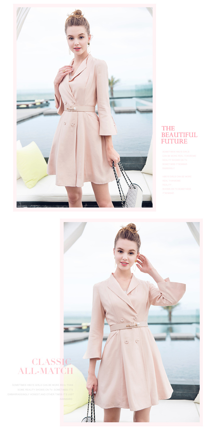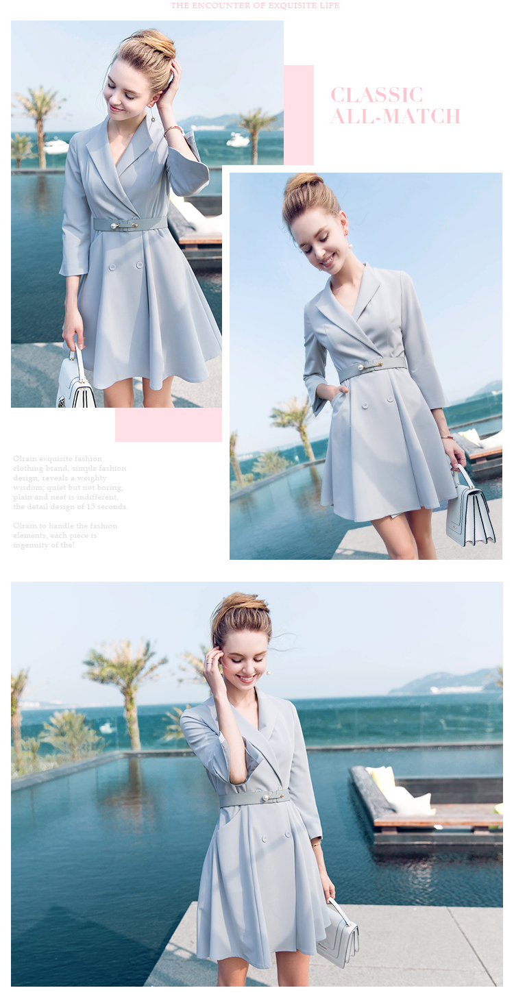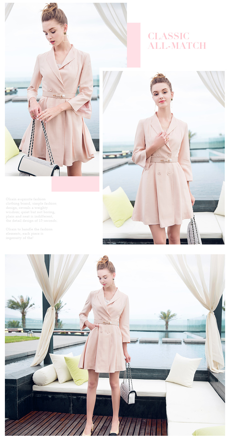 欧芮儿春装2019款女装新款收腰显瘦系带连衣裙女中长款女裙子