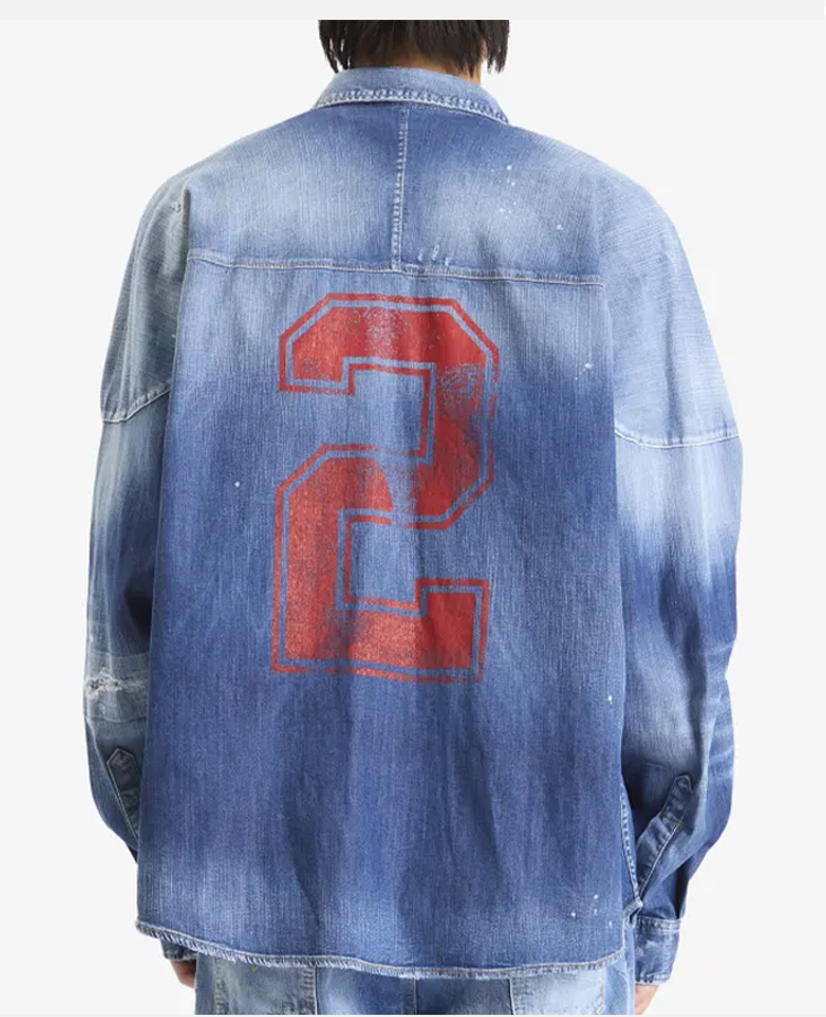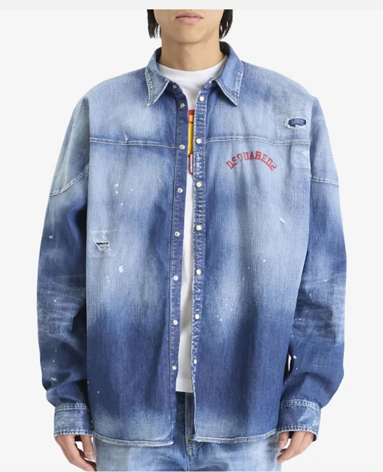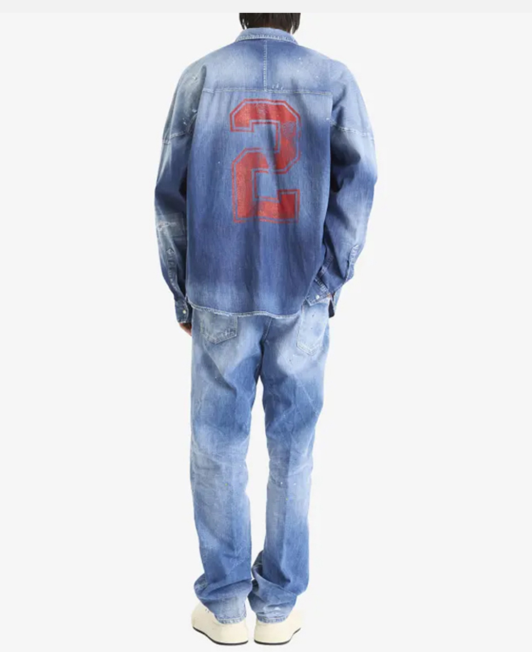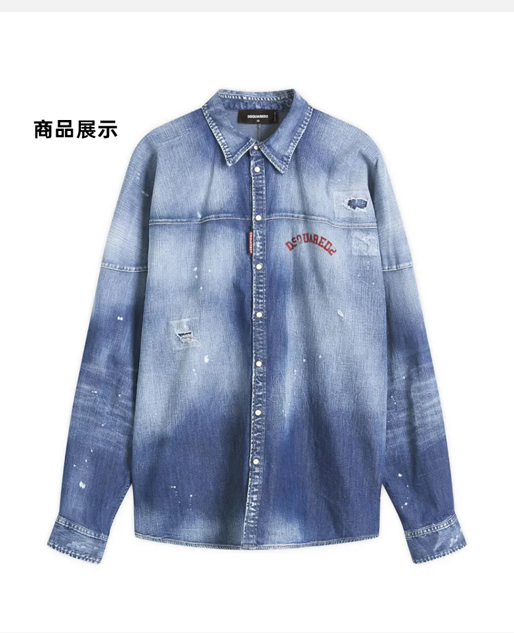 DSQUARED2 男士数字徽标印花牛仔长袖衬衫 海蓝色 S71DM0773 S30341 470