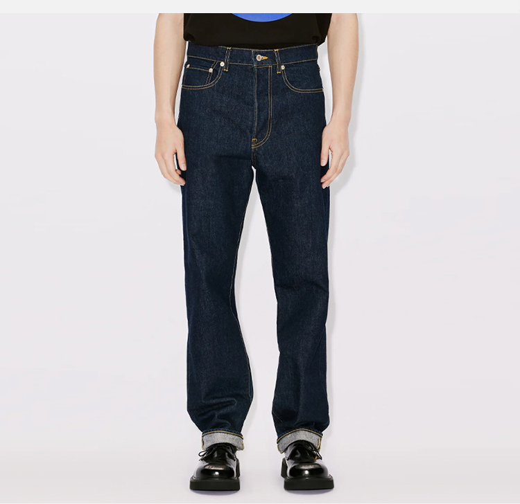 KENZO 高田贤三 男士徽标贴花直筒休闲牛仔裤 蓝色 FD65 DPP33 6A1 DM