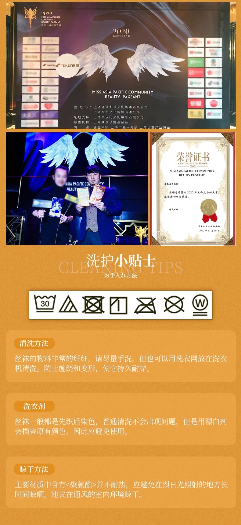 温馨提示: 我们平时多注意爱惜袜子,才能让打底袜穿得更久一些哦。 1,穿袜子的时候,注意修剪手部和脚部的指甲。指甲过长,会加大勾丝和破洞的概率。 2,洗袜子的时候,袜子不要浸泡很长时间,另外,也不要直接放到洗衣机洗哦,手洗裤袜寿命会比机洗裤袜长很多。