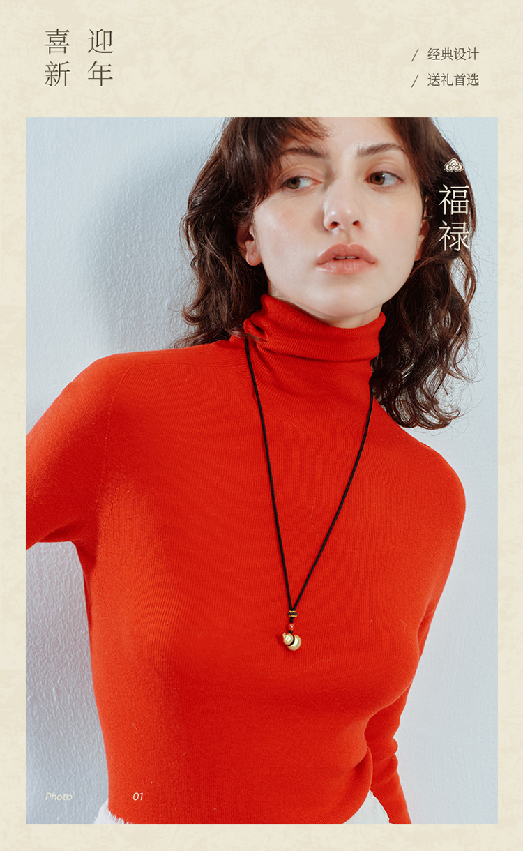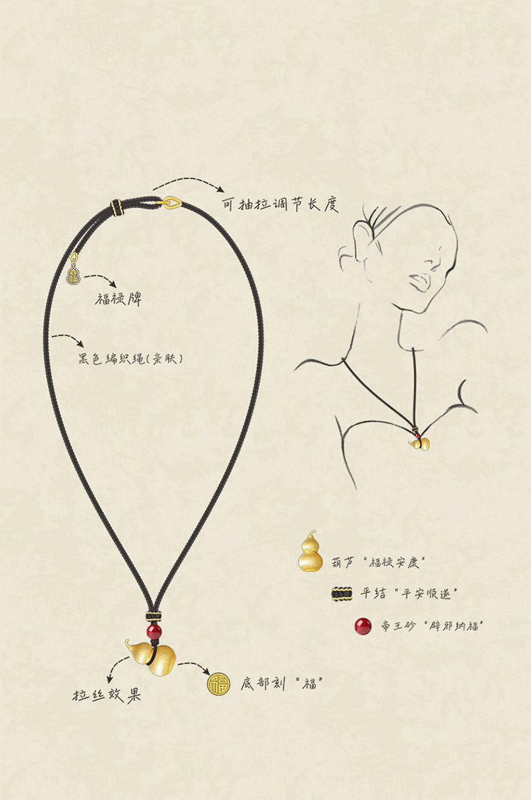 ZEGL设计师金色葫芦项链男女同款复古黑色编绳长链秋冬毛衣配饰