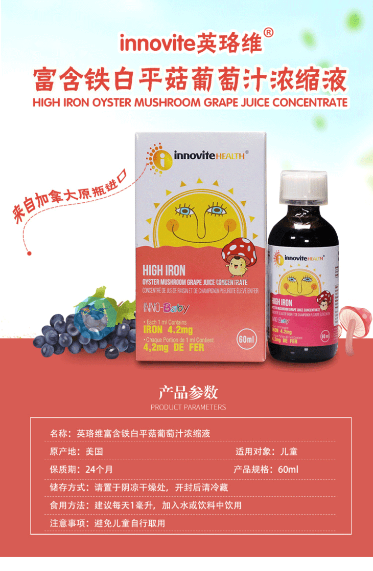 英珞维 新品加拿大进口英珞维富含铁白平菇葡萄汁浓缩液 60ml