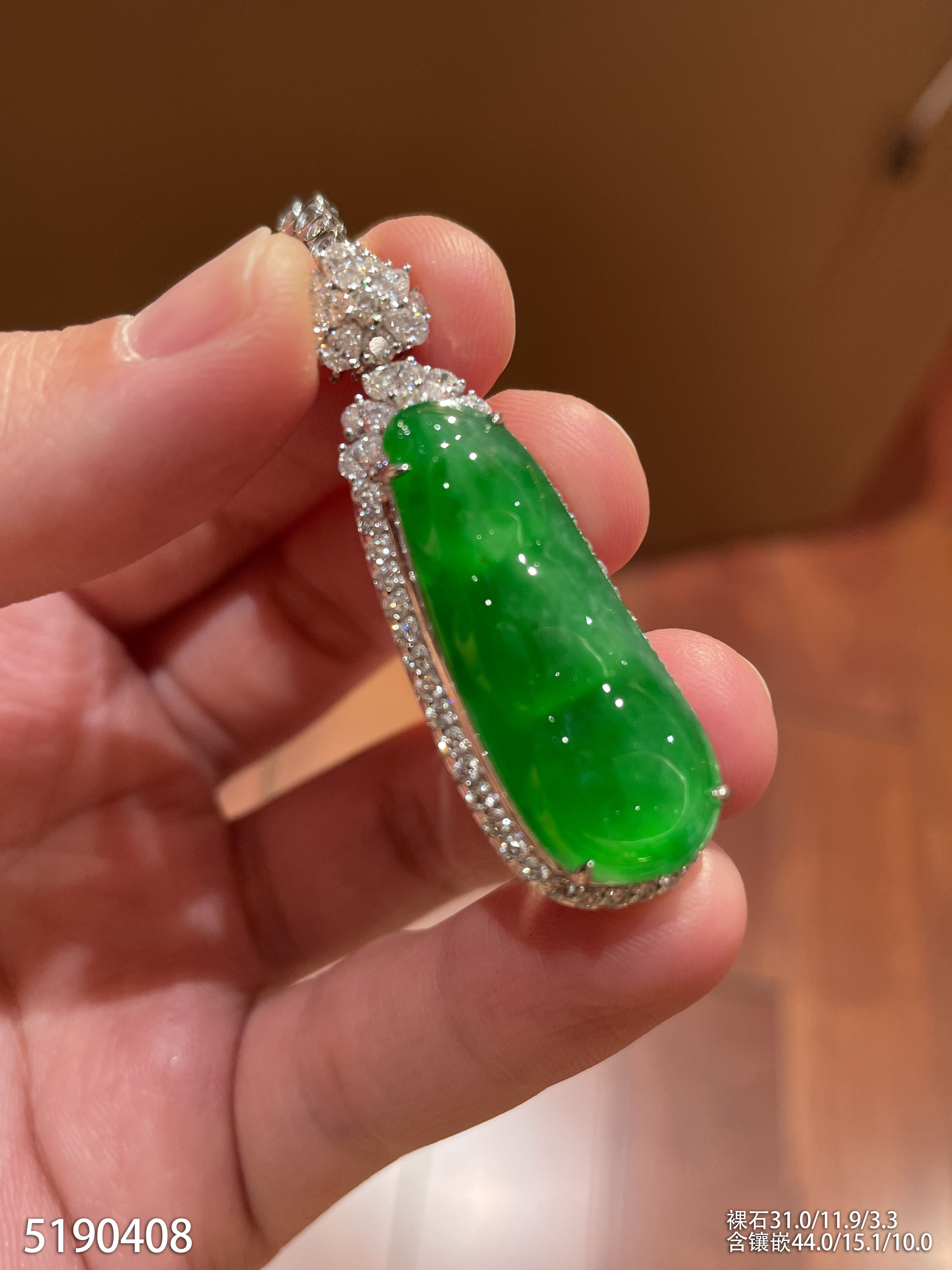 老坑艳绿富贵豆吊坠【5190408】具体价格微信咨询