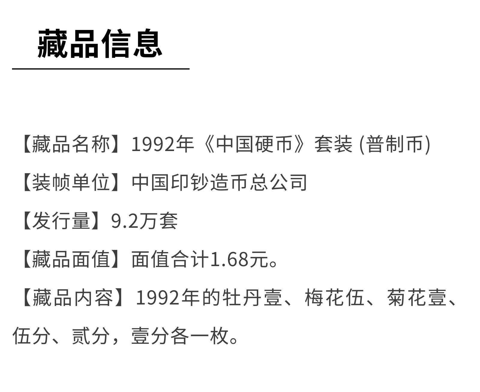 1992年《中国硬币》套装 (普制币)