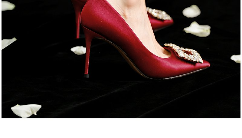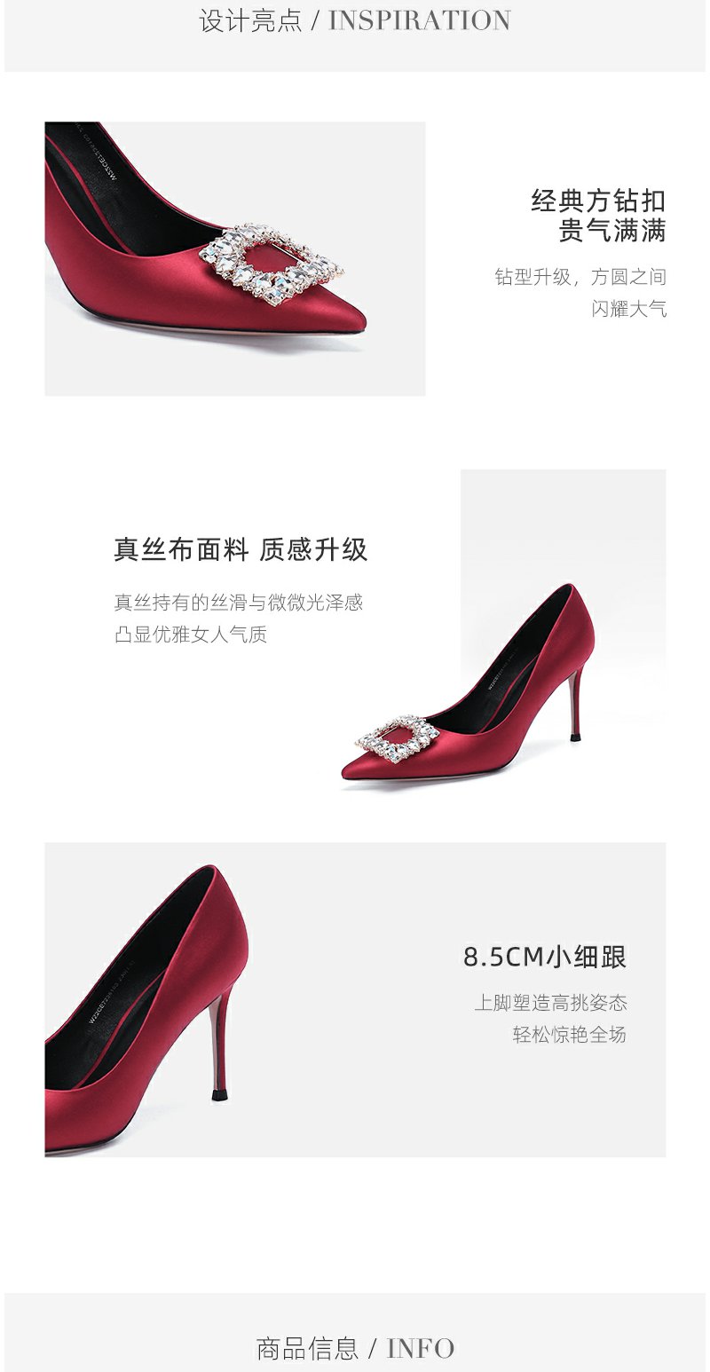 westory春秋缎面水钻方扣中式高跟宴会秀禾鞋婚鞋两穿72351