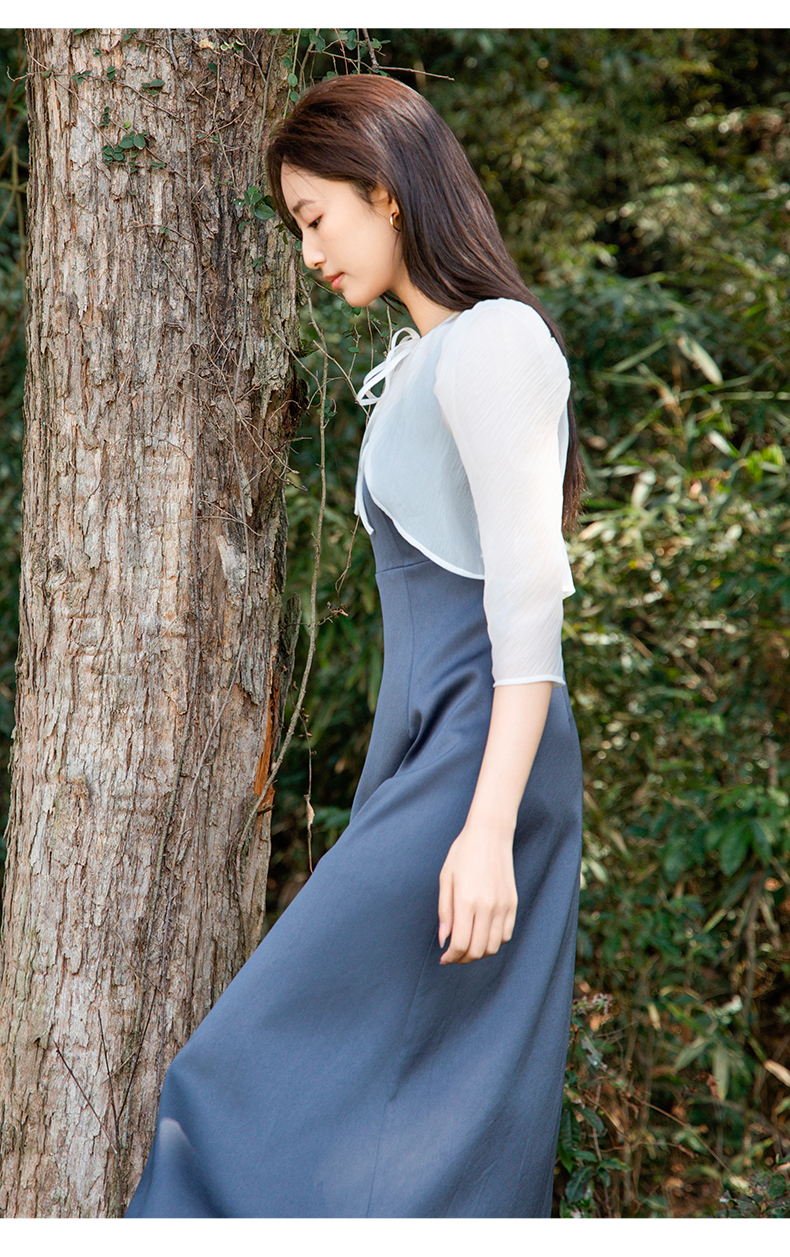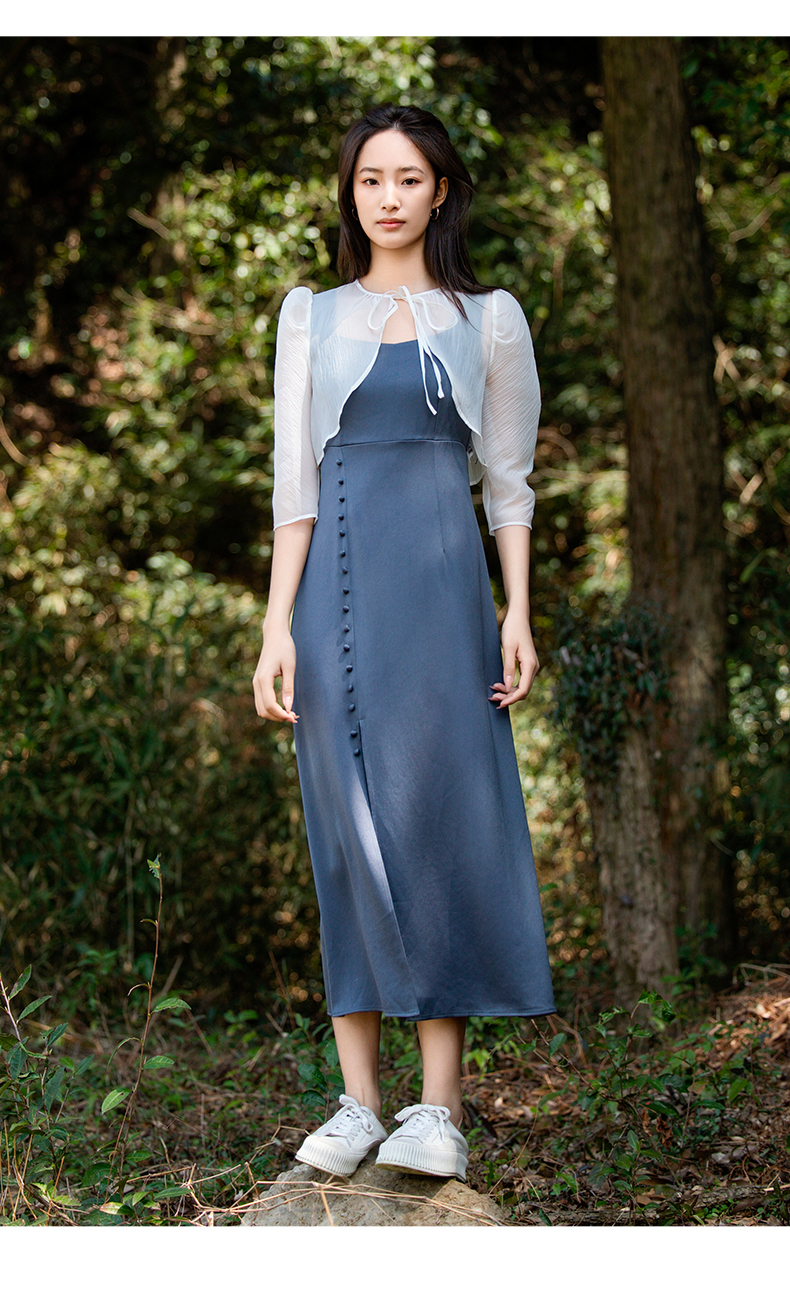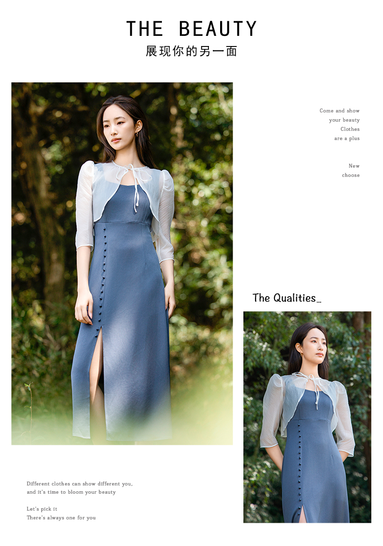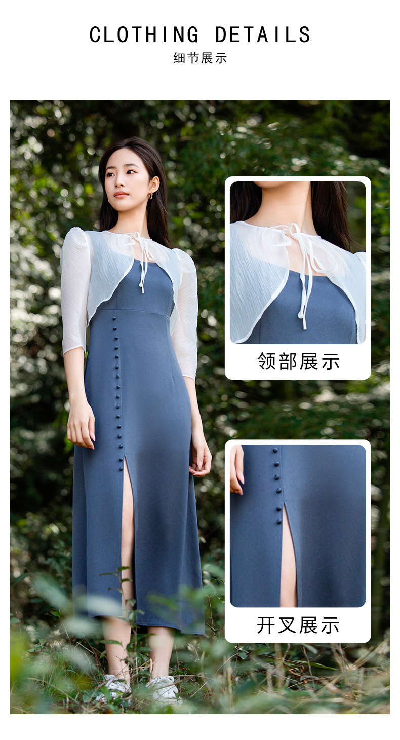 oldcolour欧珂夏季套装连衣裙女荷叶边短款罩衫两件套P26102523