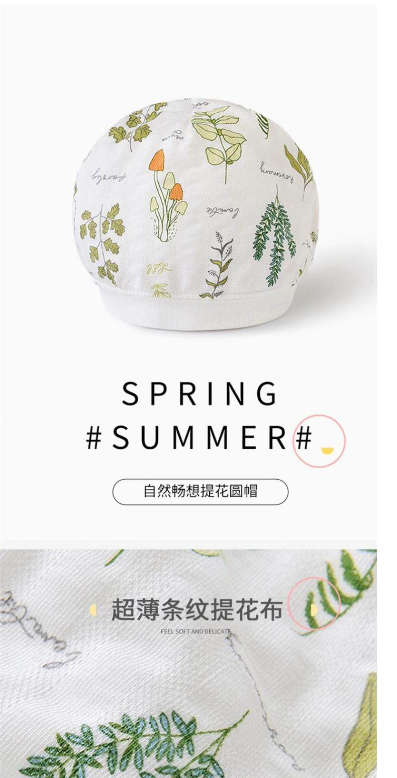 英氏婴儿帽子夏季纯棉透气胎帽空调房帽子提花薄款YLSJJ22006A