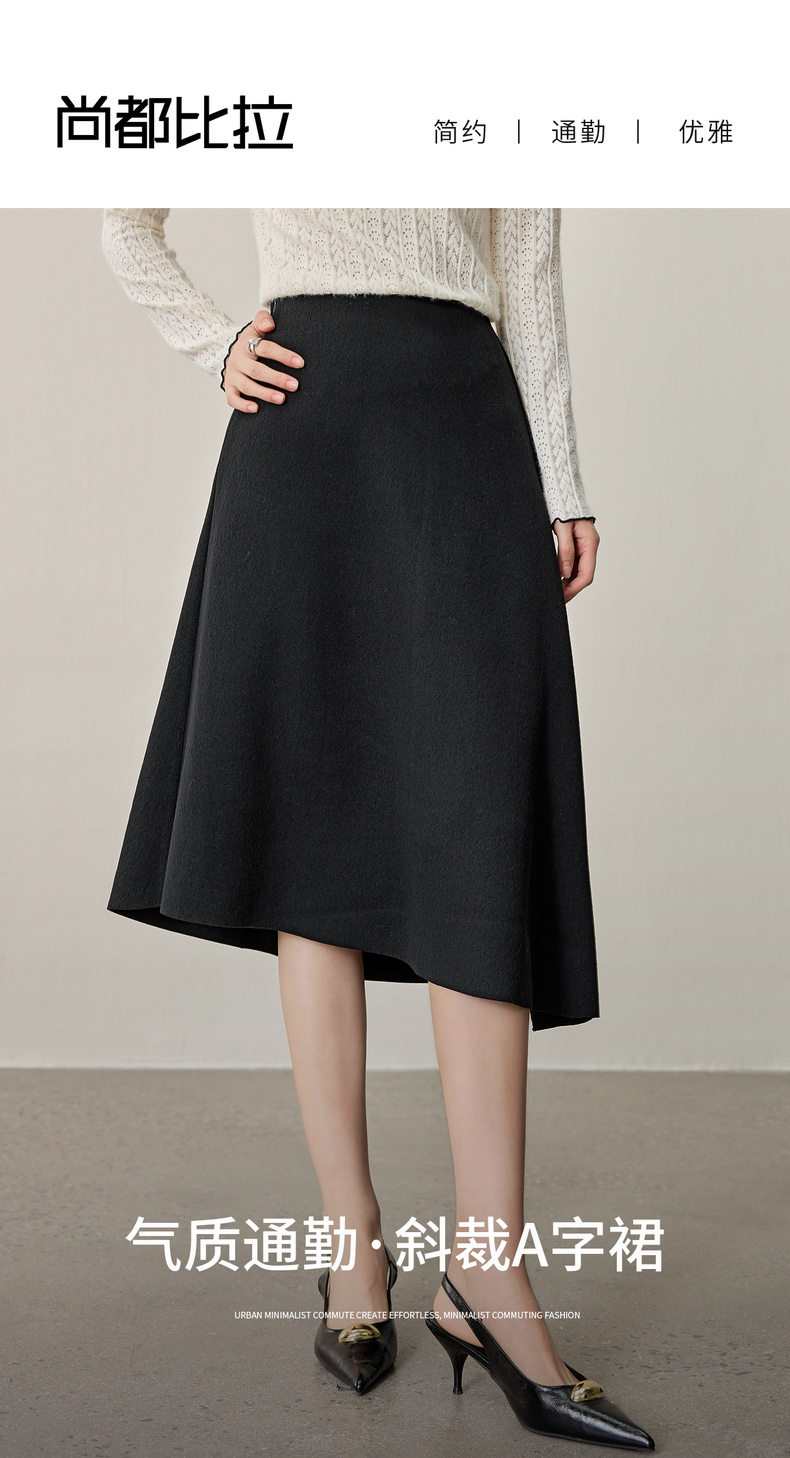 【内购】【斜裁设计】通勤梨型身材弹力腰宽松显瘦厚实保暖针织A字半身裙-153QG2898