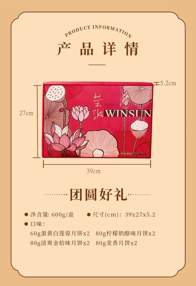 荣诚团圆好礼月饼礼盒/1盒(600g 8个装,配礼袋)生产日期:9月