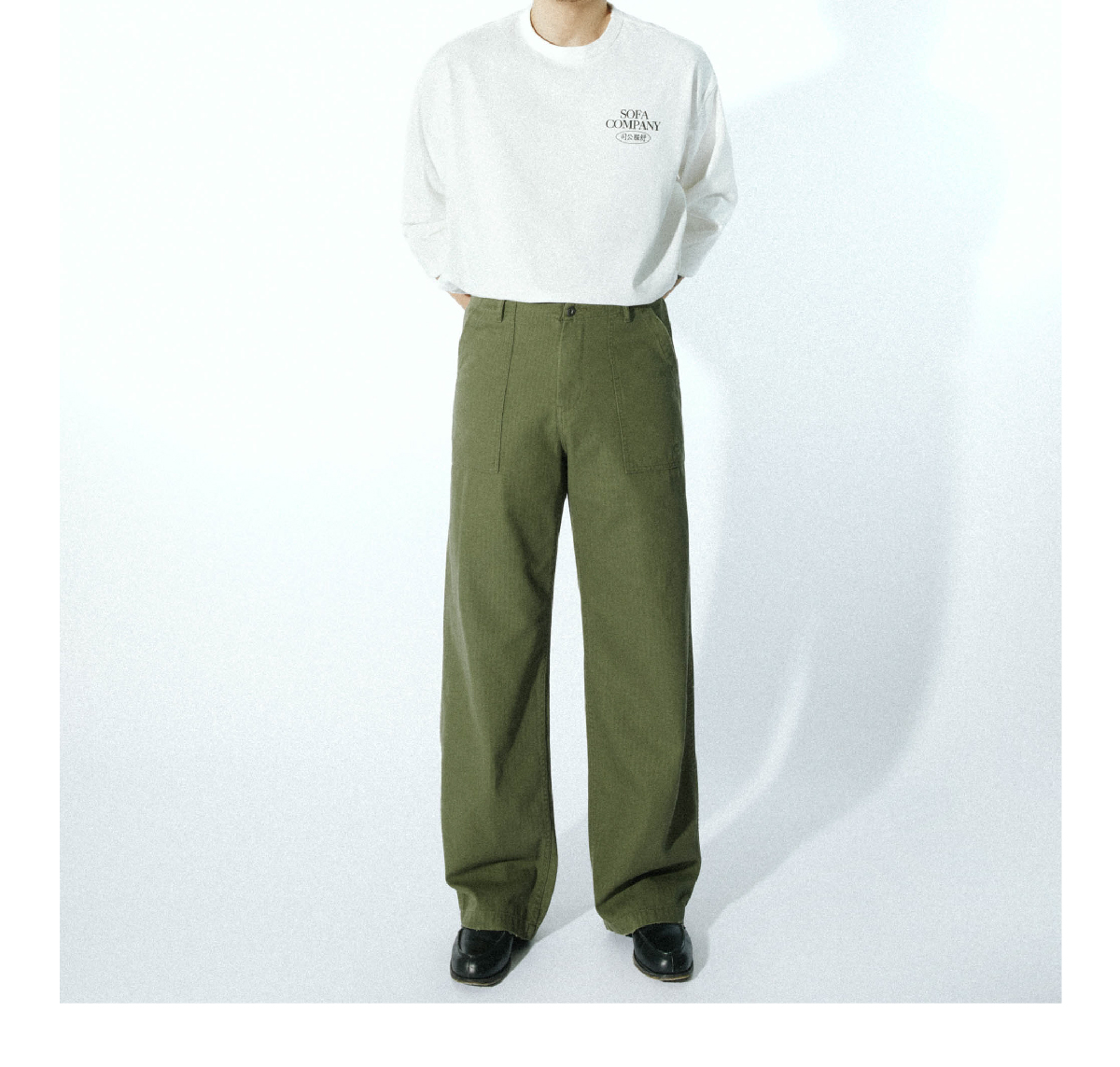 SUPERTOFU(SPTF) /RC-SS24-P053/磨损做旧 人字纹 OG107面包裤 工装长裤