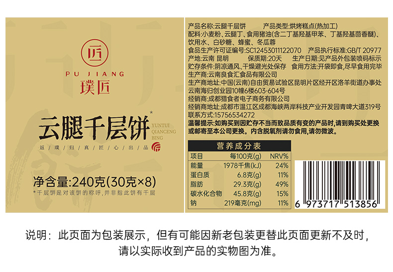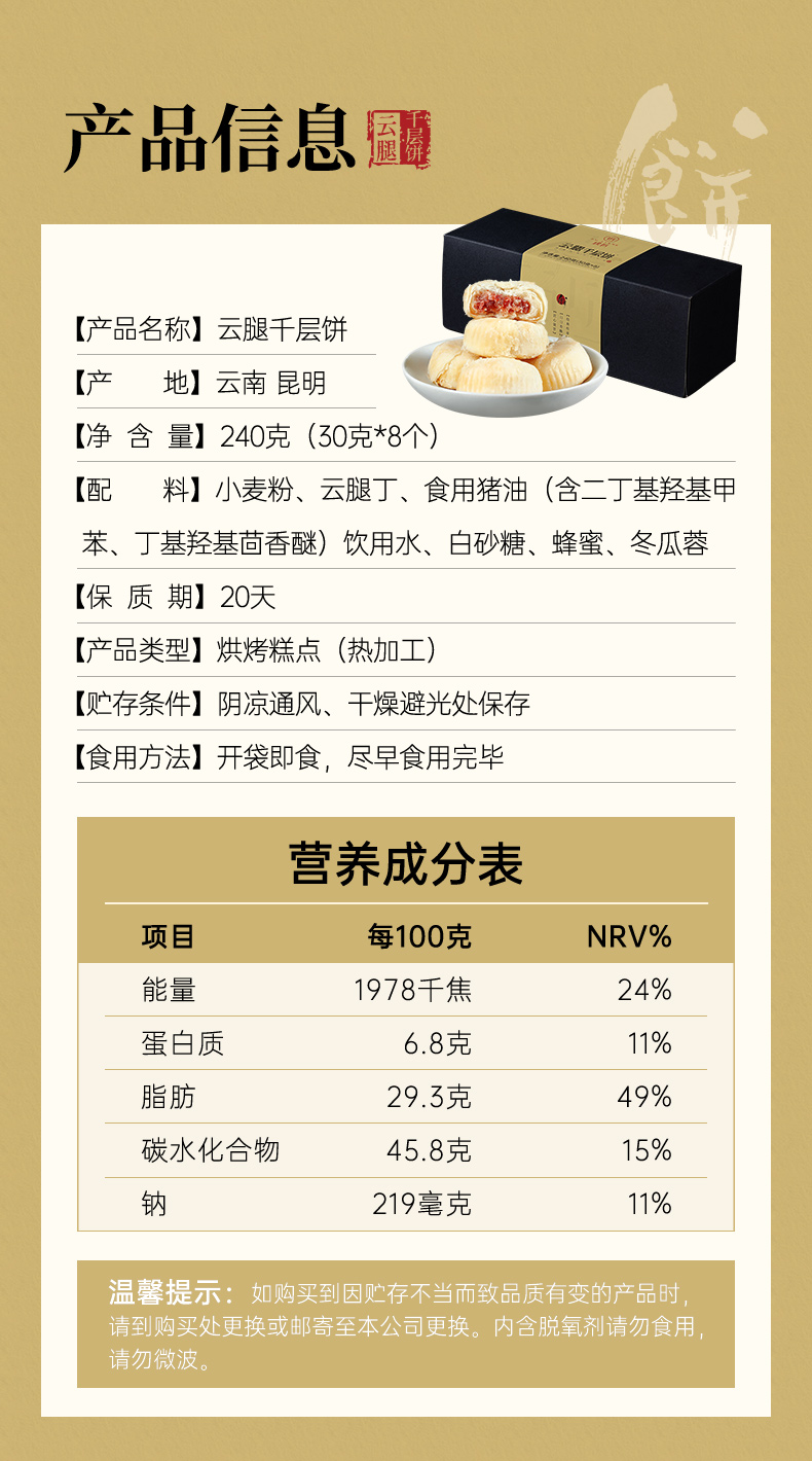 云南云腿月饼手工老式千层饼传统火腿酥皮月饼云腿丁月饼中秋8枚
