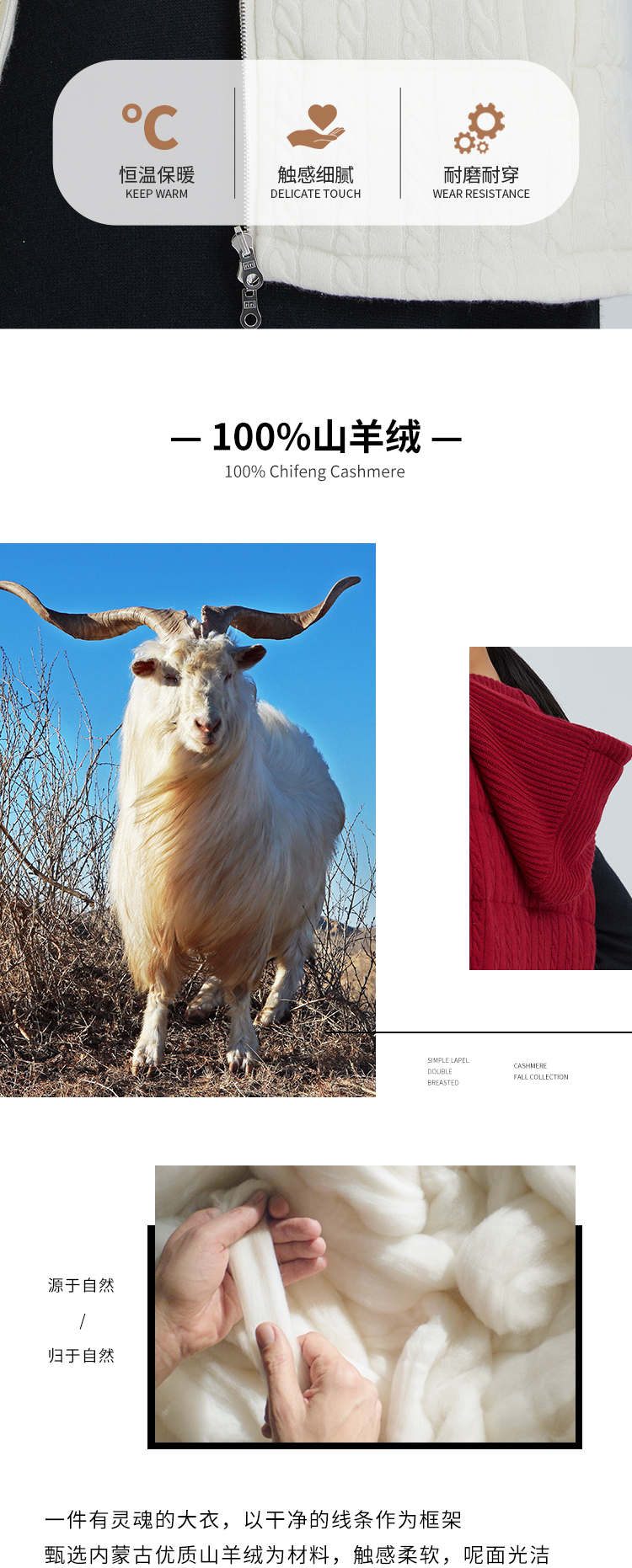 东黎羊绒是赤峰东荣集团自主品牌,自有牧场/羊绒制品全产业链优势,实现了羊绒从“牧场”到“商场”的华丽转变。