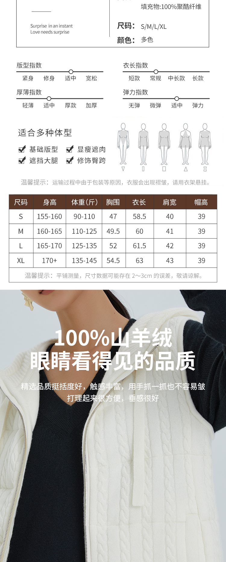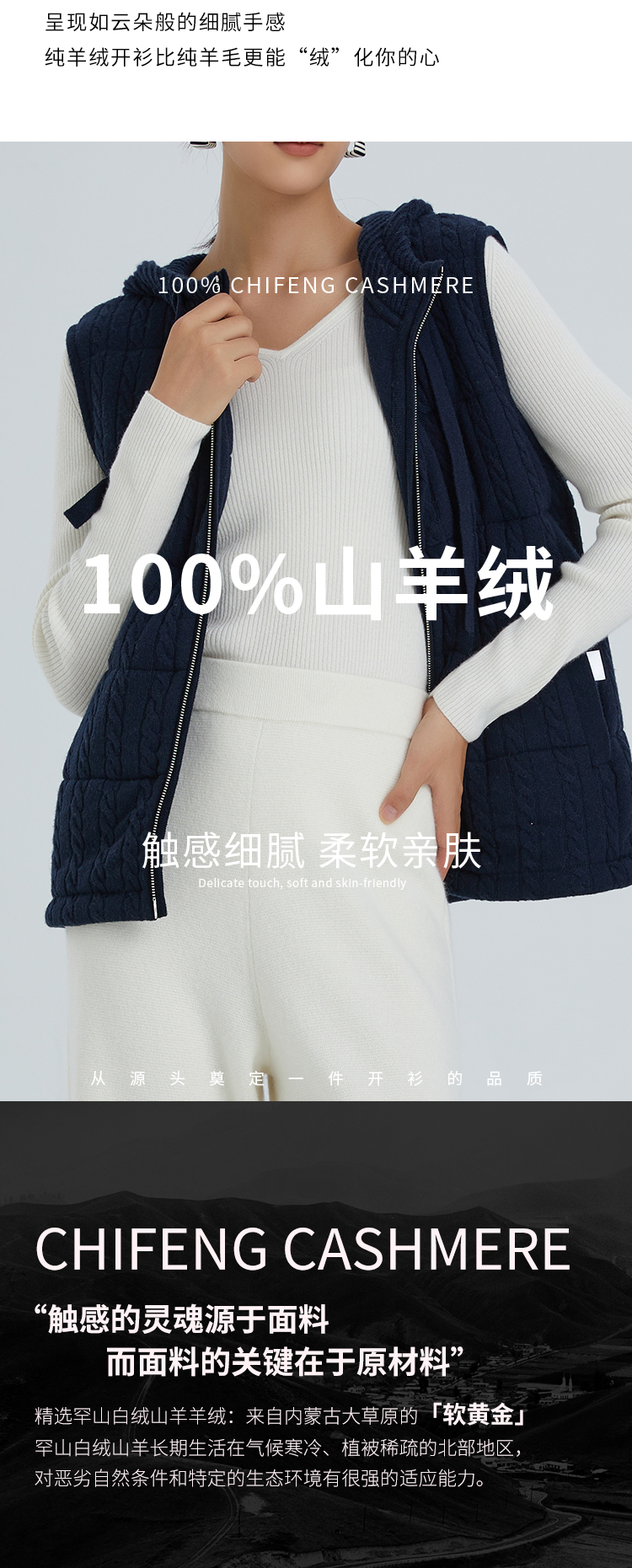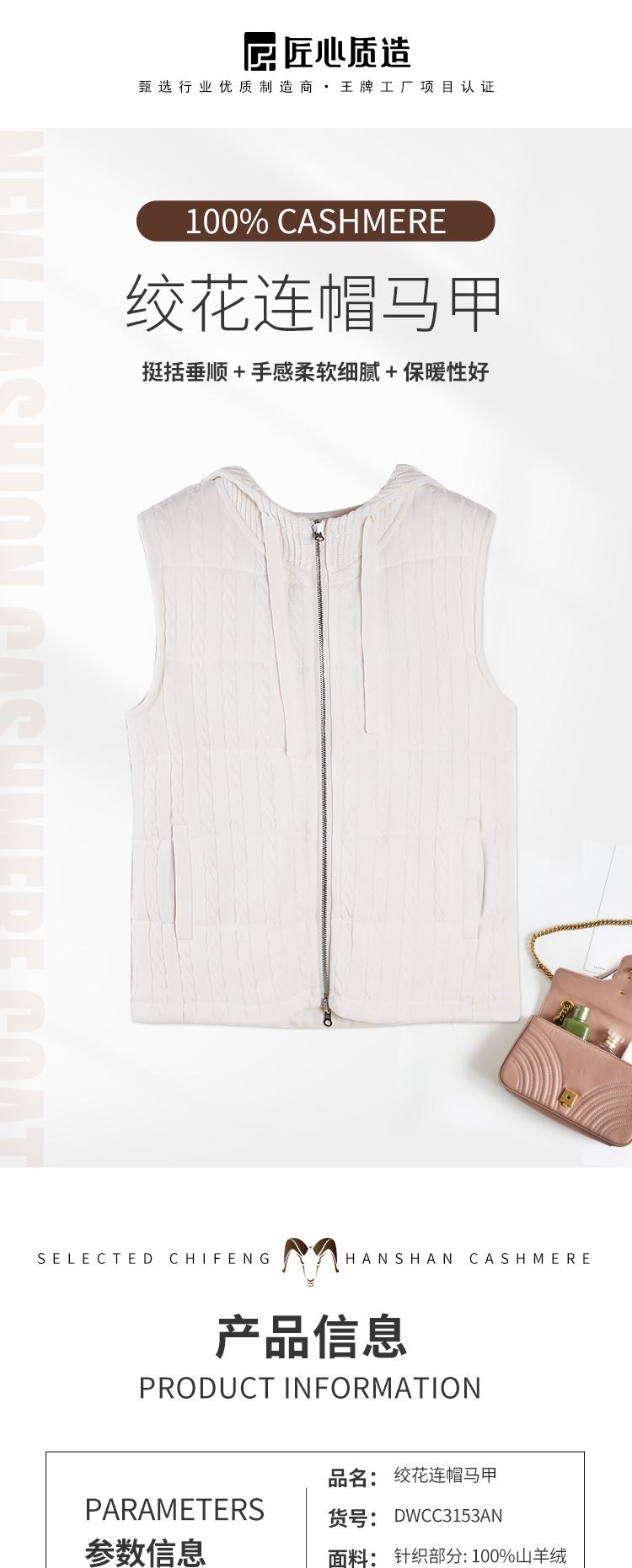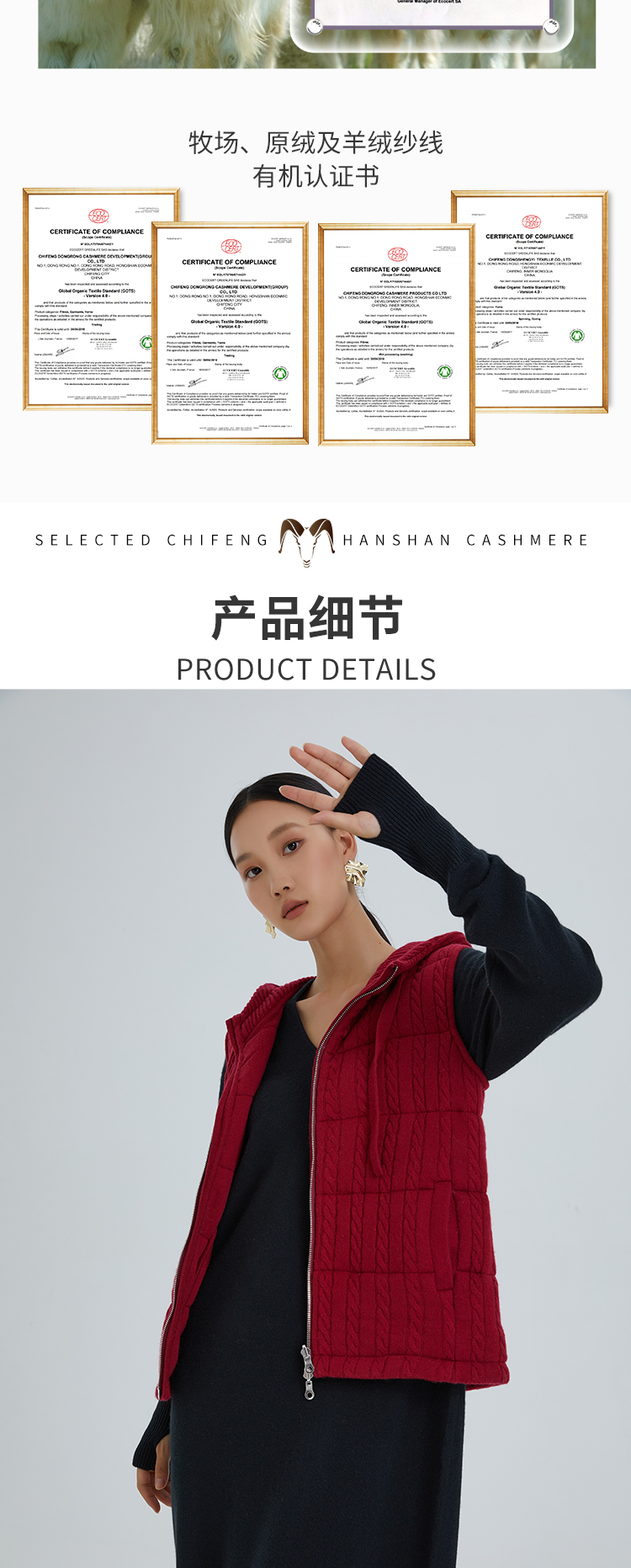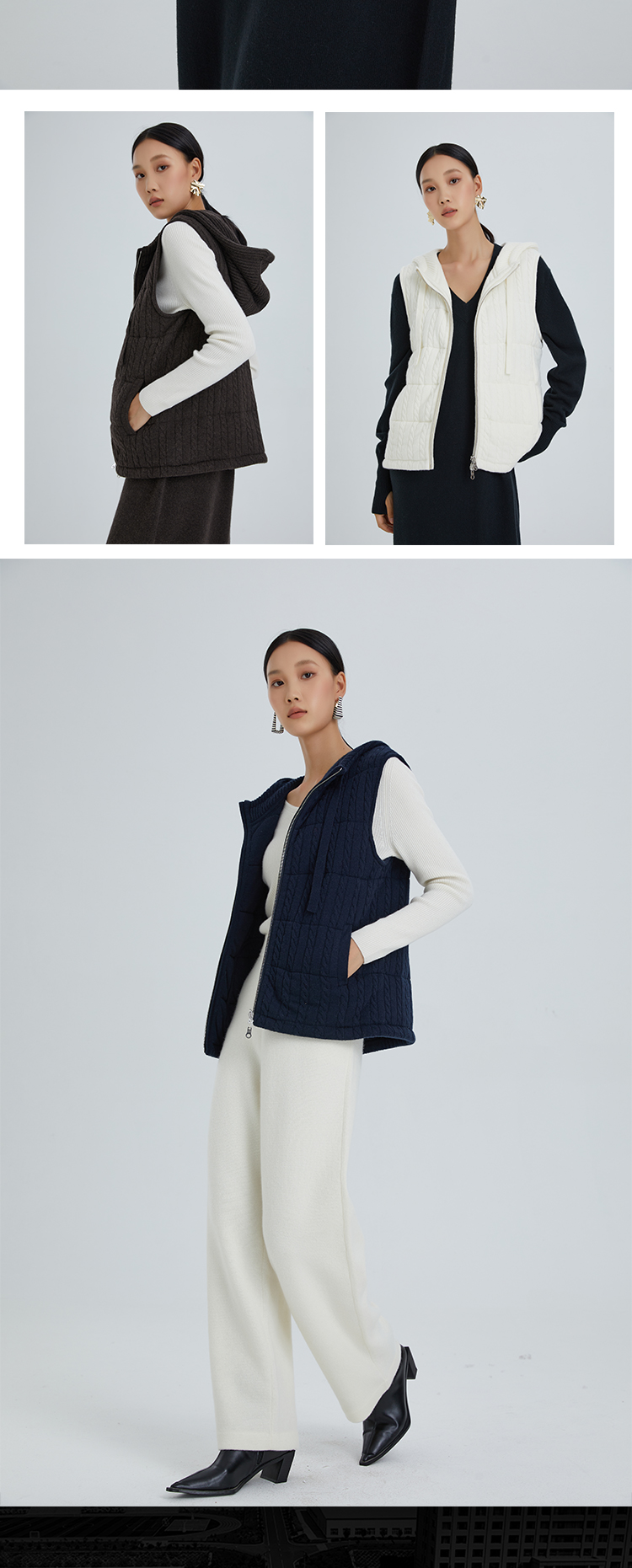 东黎 • 山羊绒女士秋冬连帽无袖绞花保暖马甲 3153