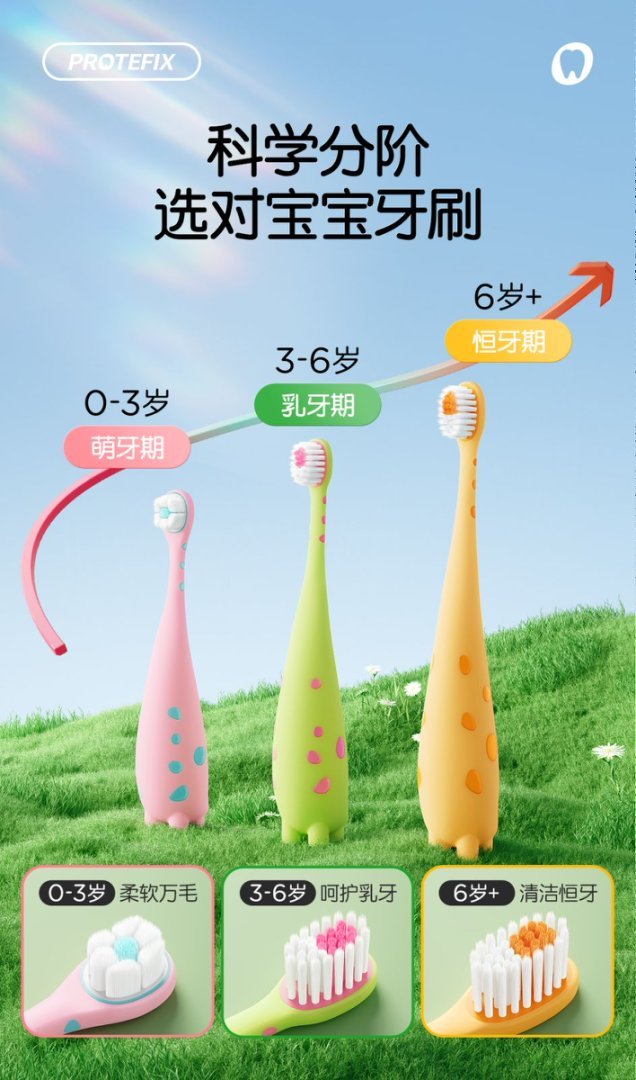 分龄牙刷 0-3岁 3-6岁 6岁+